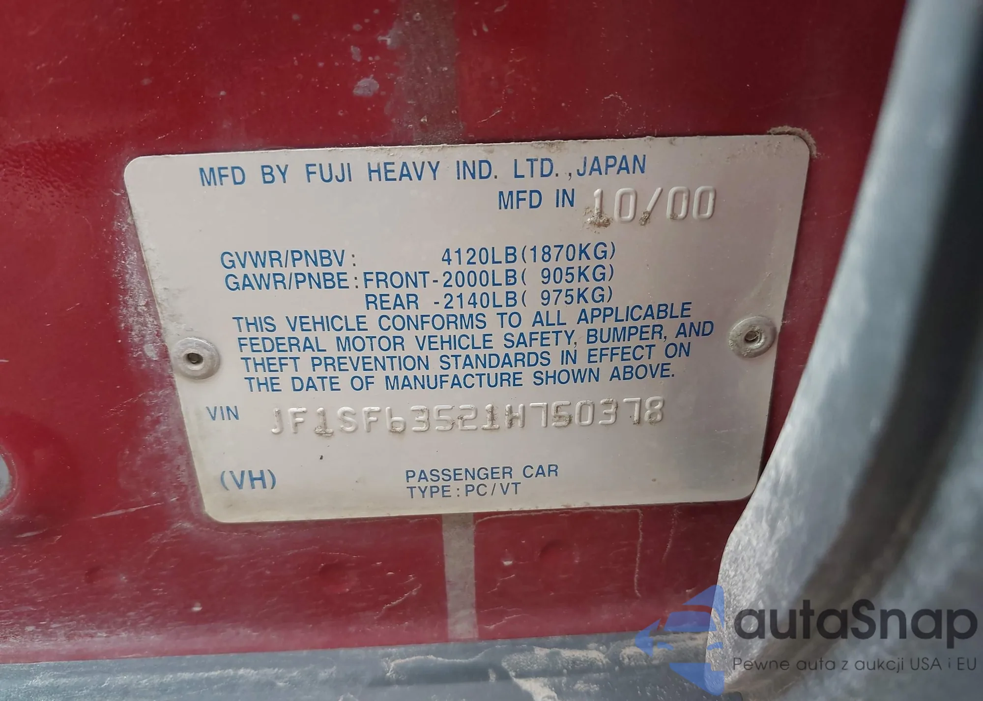 • VIN JF1SF63521H750378