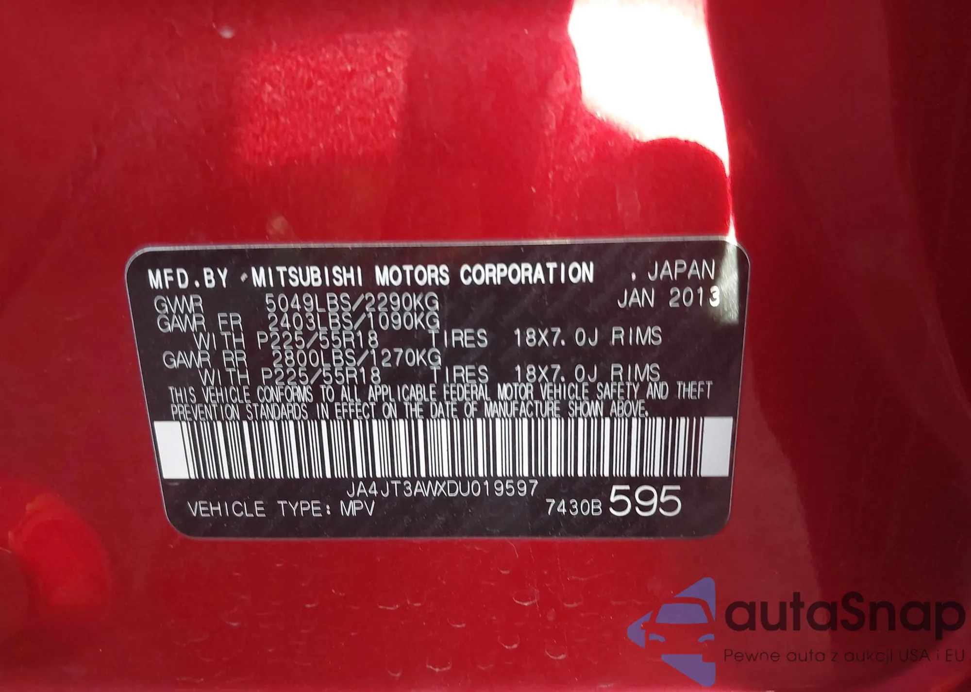 LOT: 42092622 VIN: JA4JT3AWXDU019597