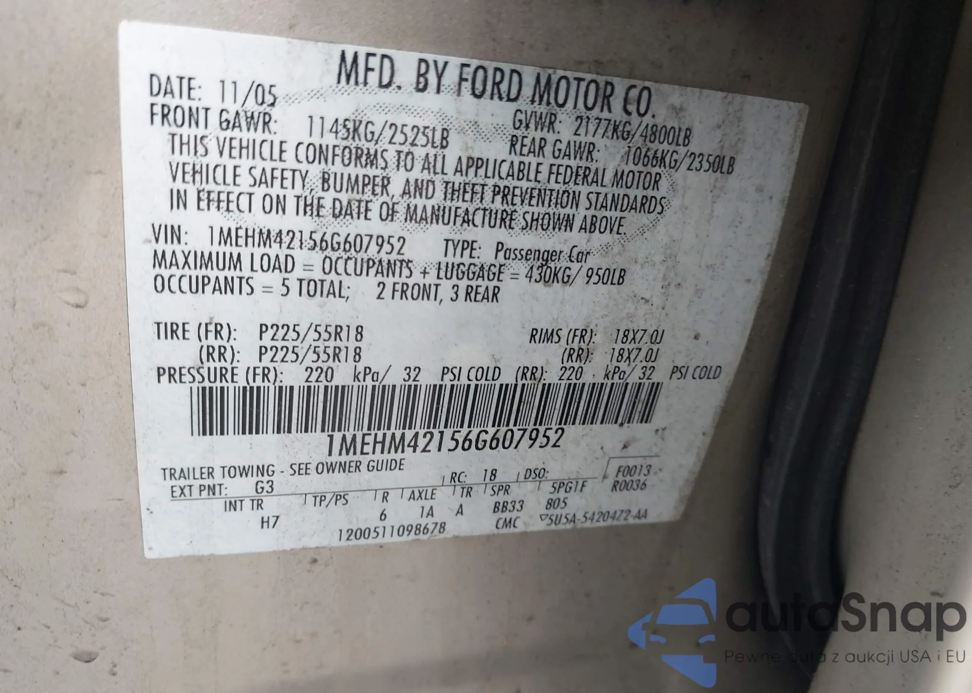 LOT: 42178474 VIN: 1MEHM42156G607952