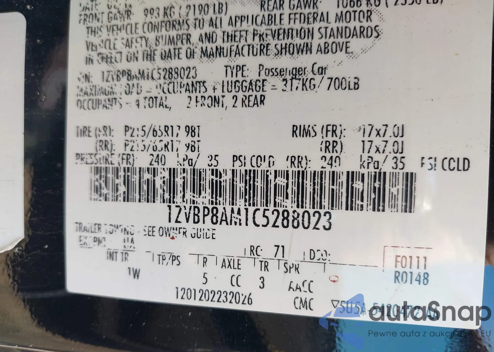 • VIN KL4CJASB8KB836560