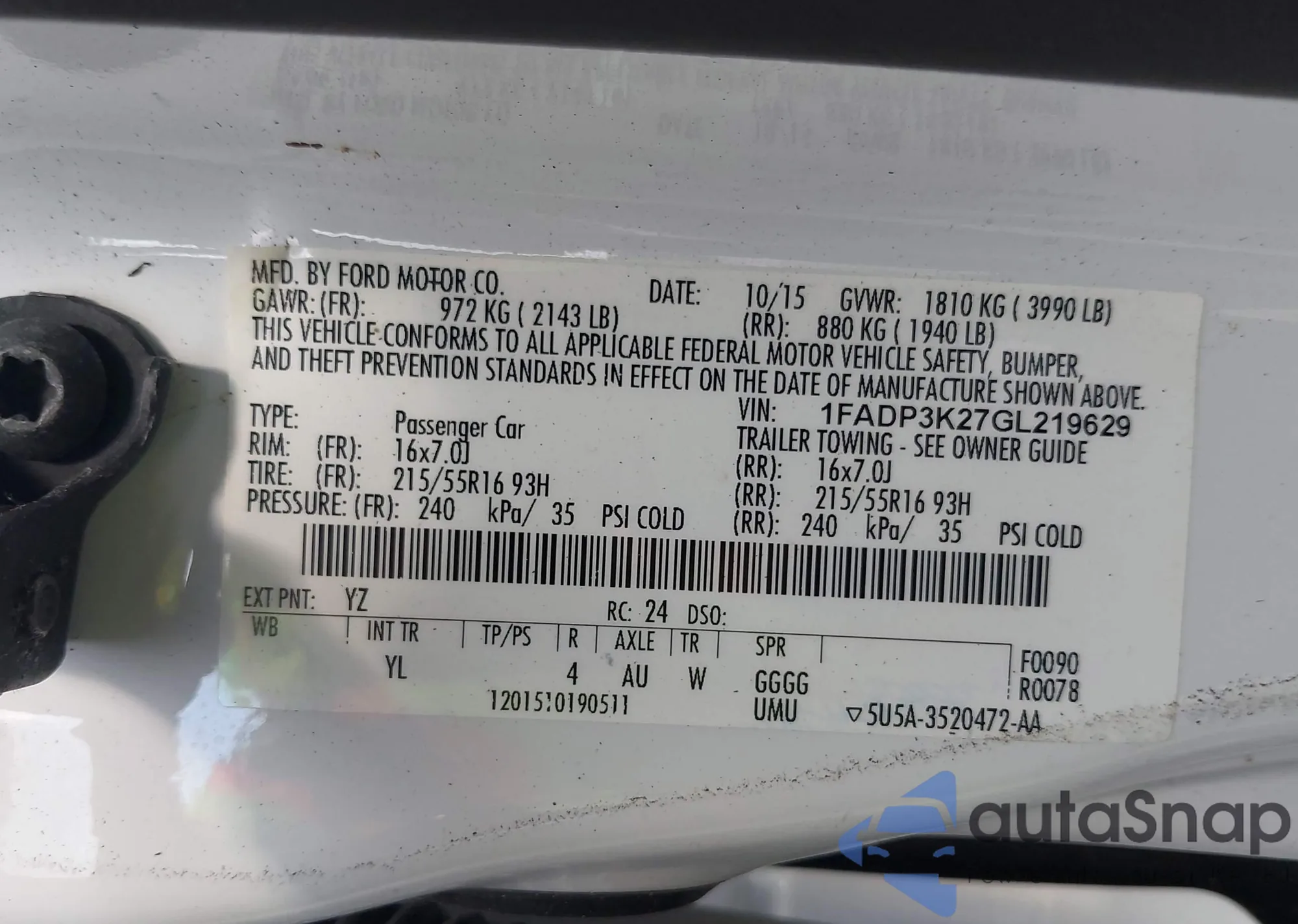 • VIN 1FADP3K2XEL194089