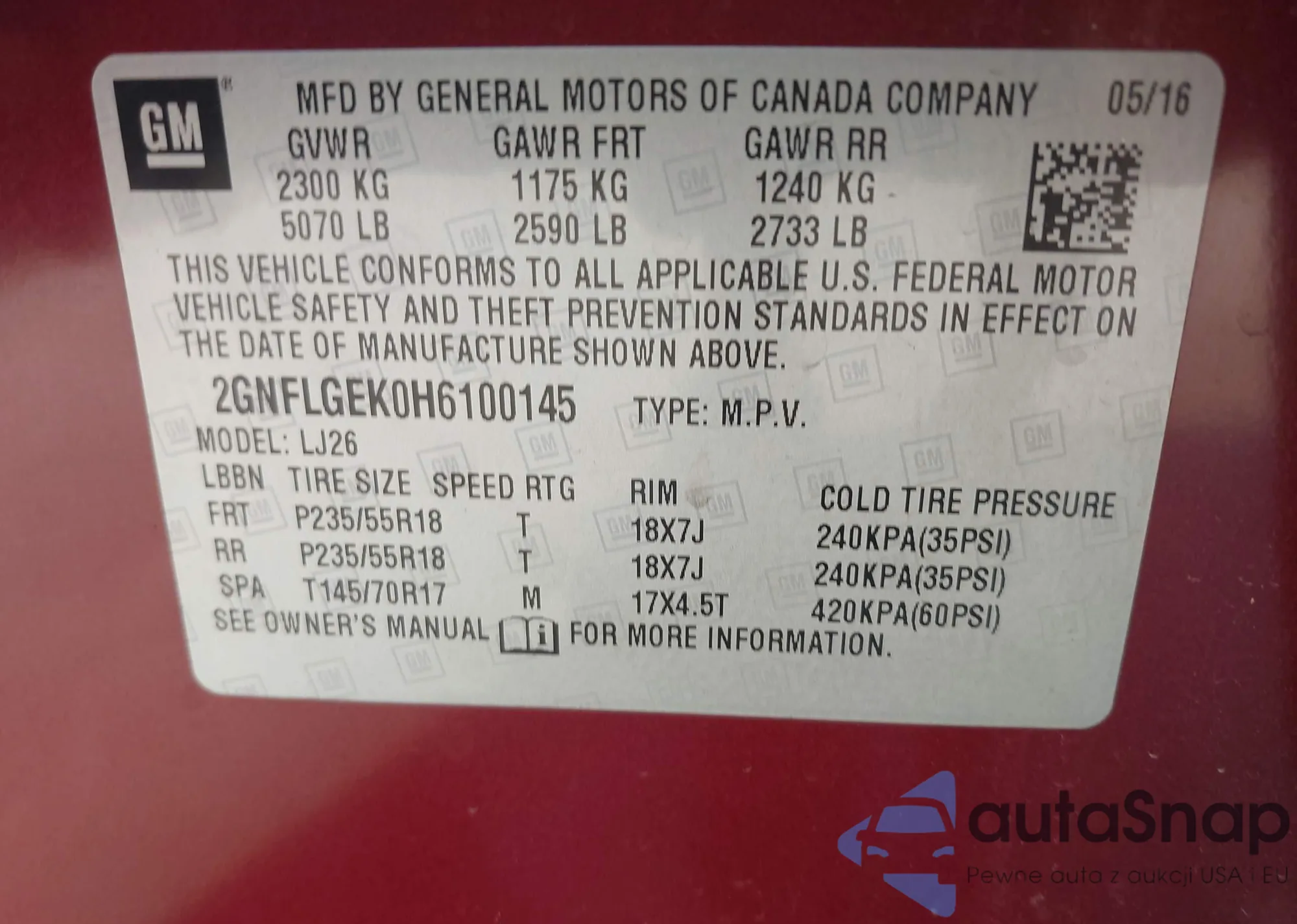LOT: 42366488 VIN: 5TFSX5EN1GX043270