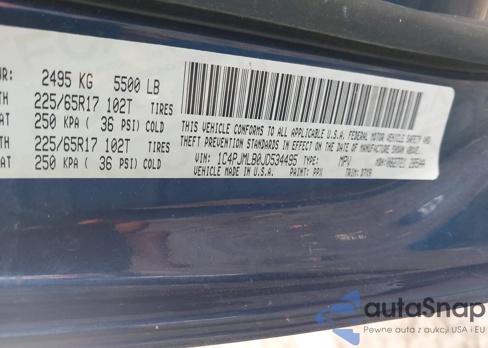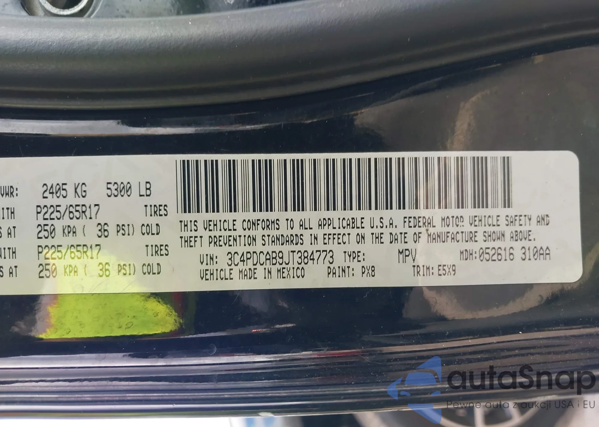 LOT: 41525313 VIN: 3C4PDCAB9JT384773