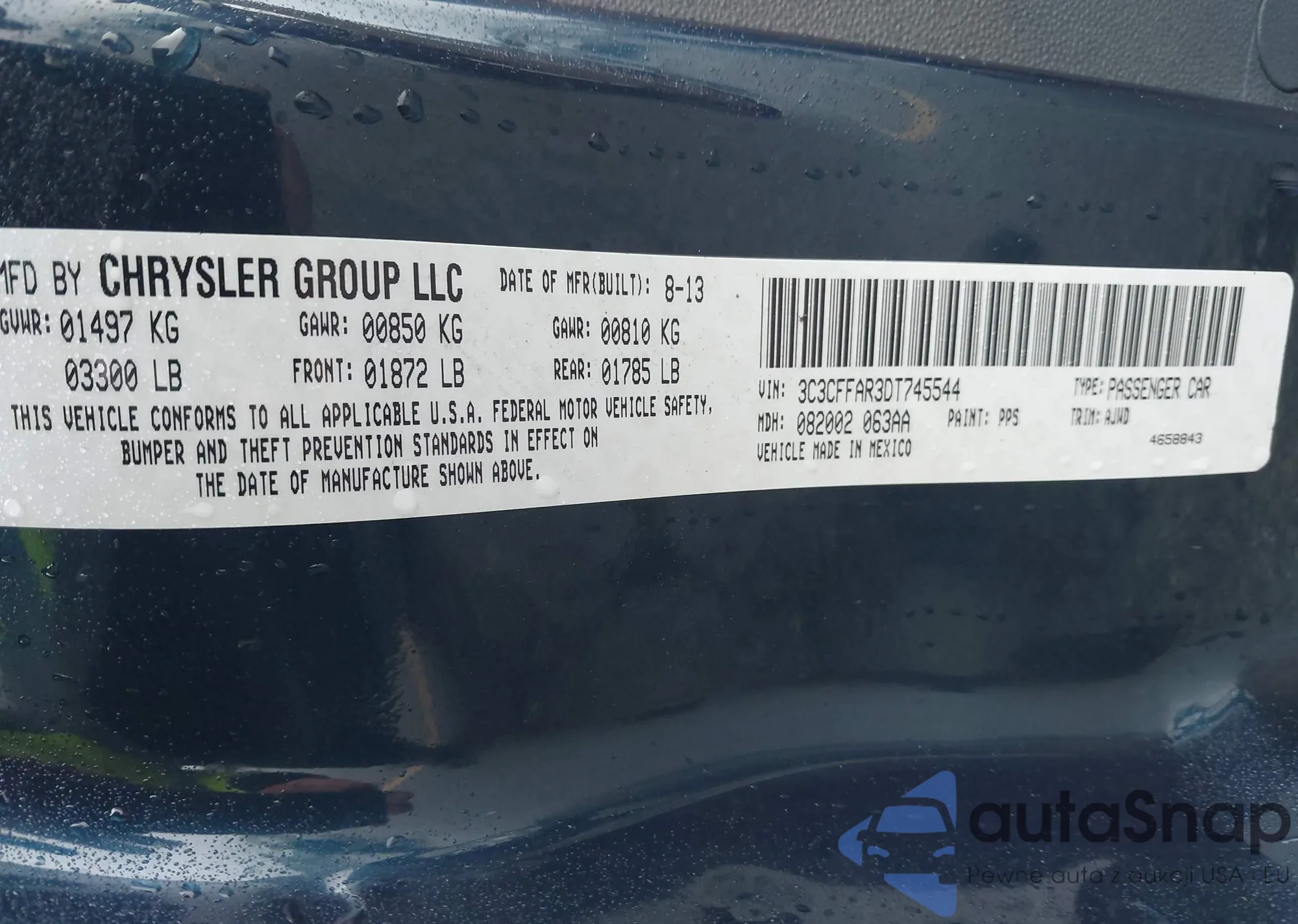 • VIN 1FMCU9GX6DUD81873