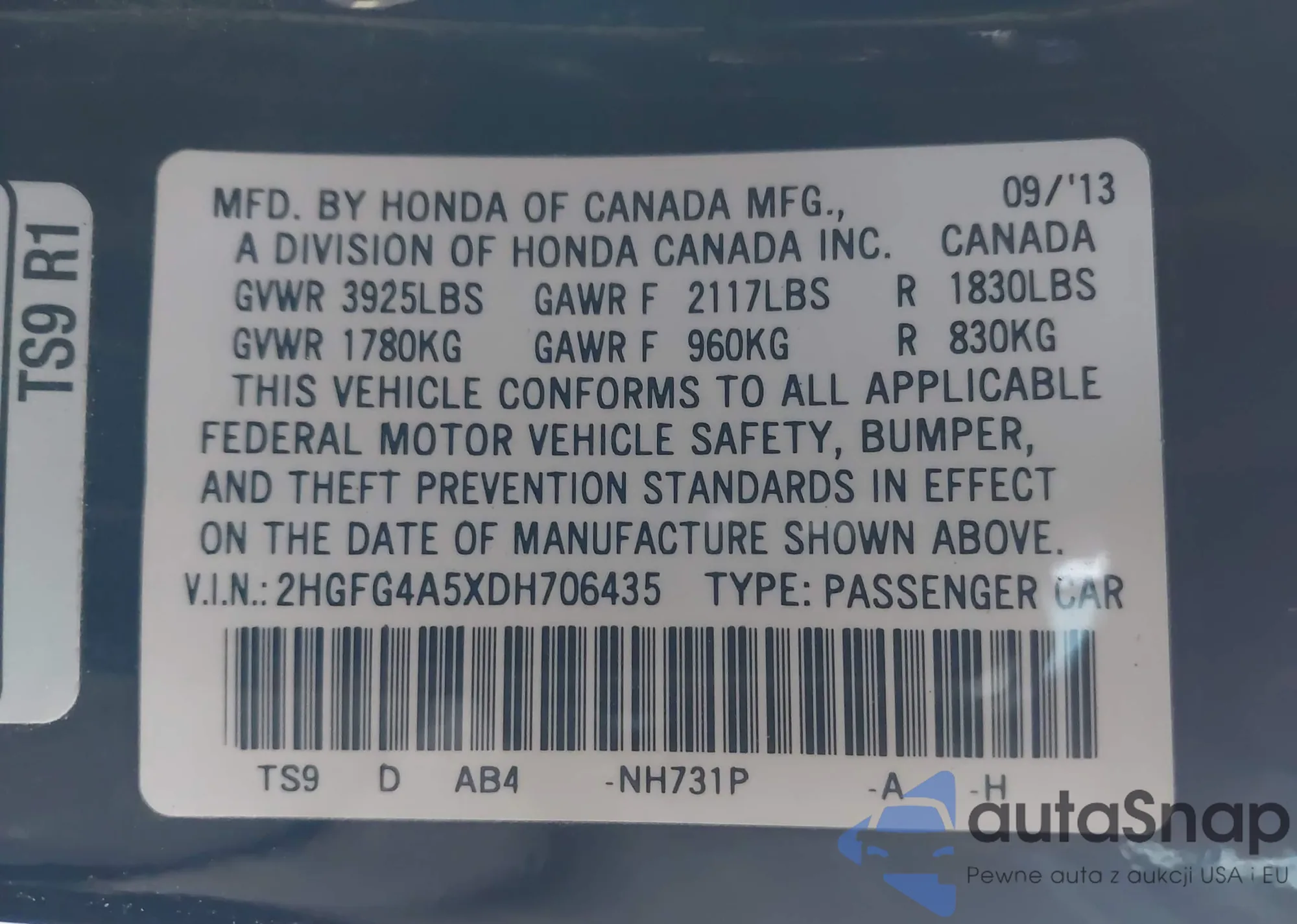 • VIN 2HGFG4A5XDH706435