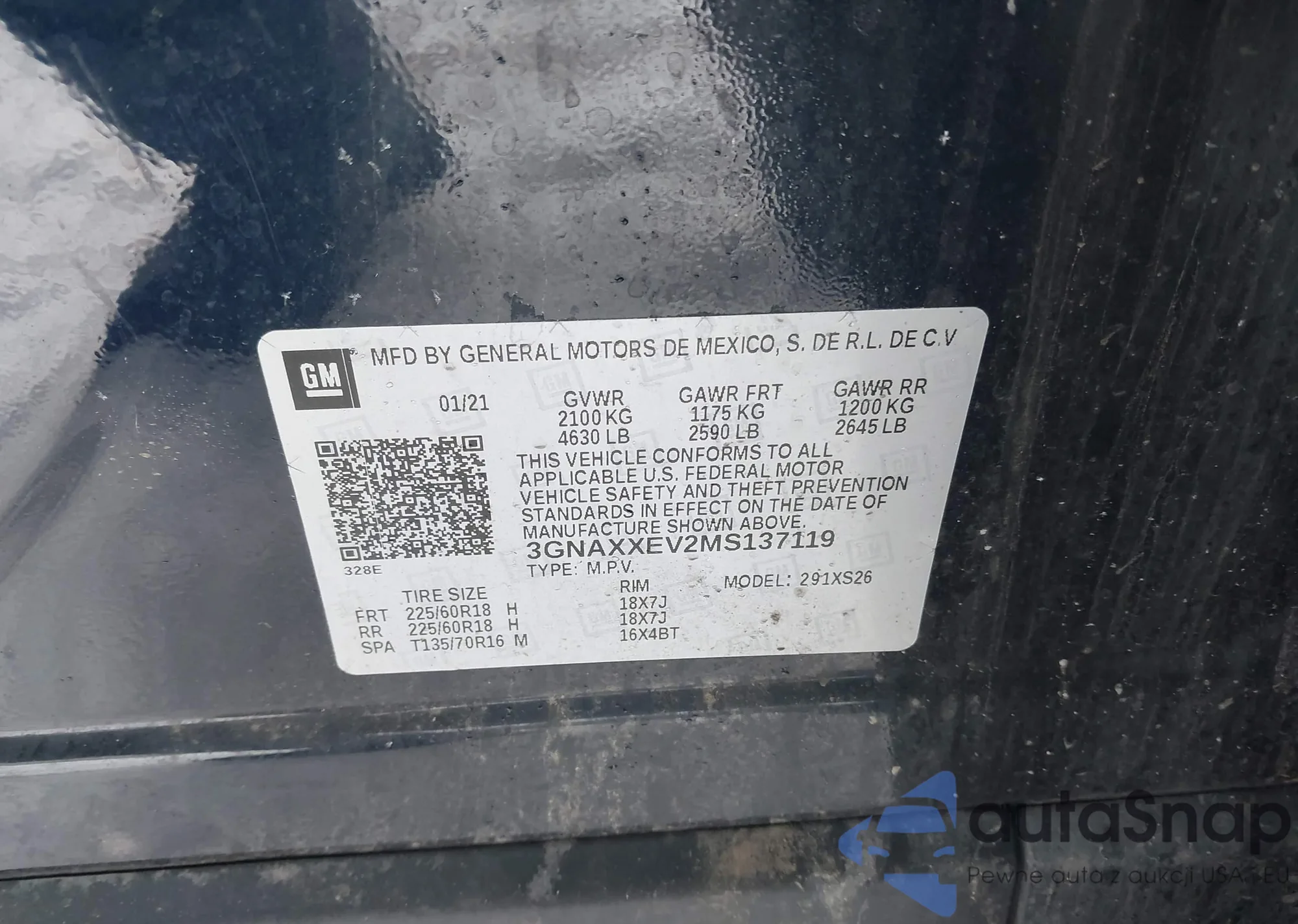 LOT: 41344057 VIN: 3GNAXXEV2MS137119