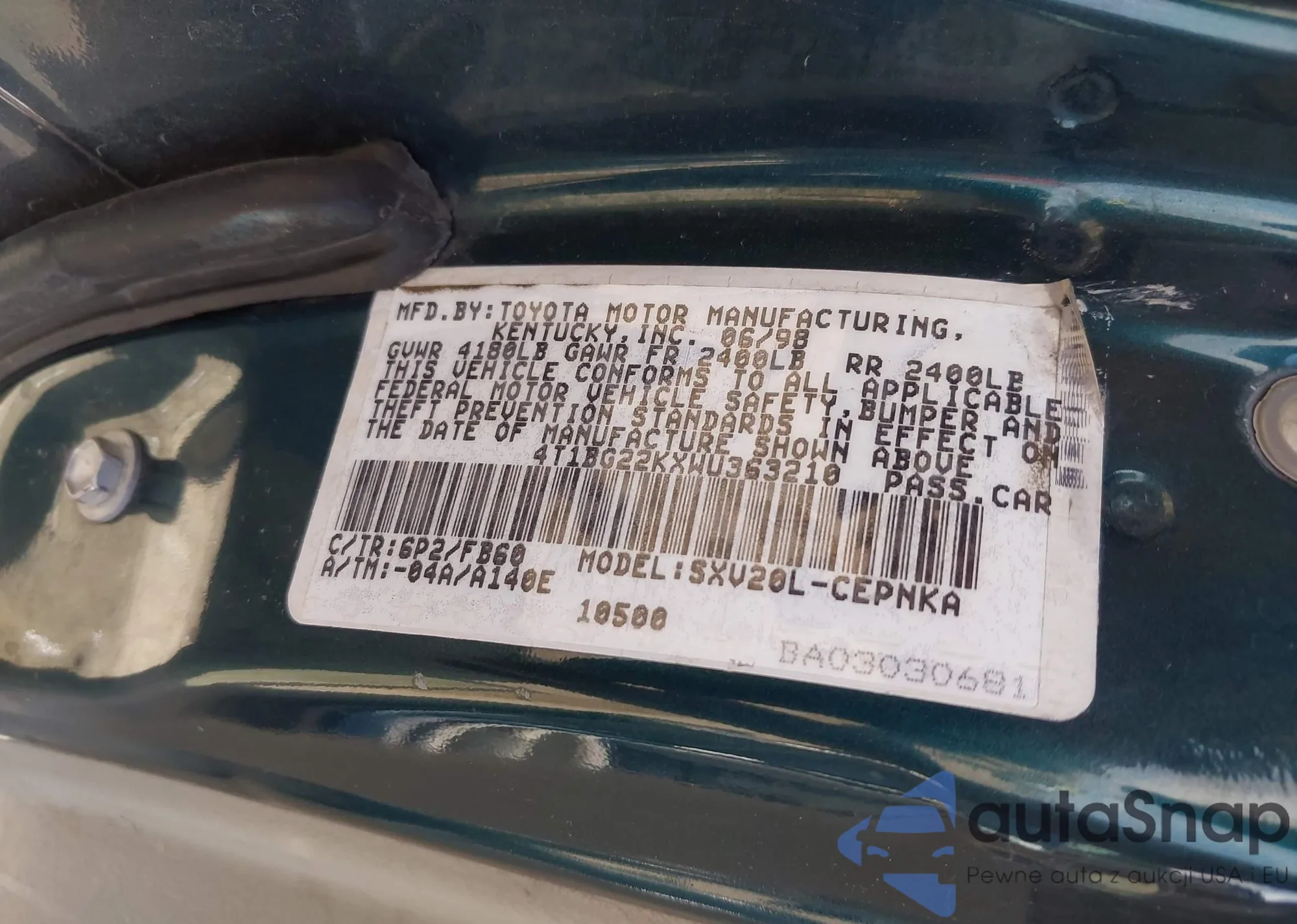 • VIN 4T1BG22KXWU363210
