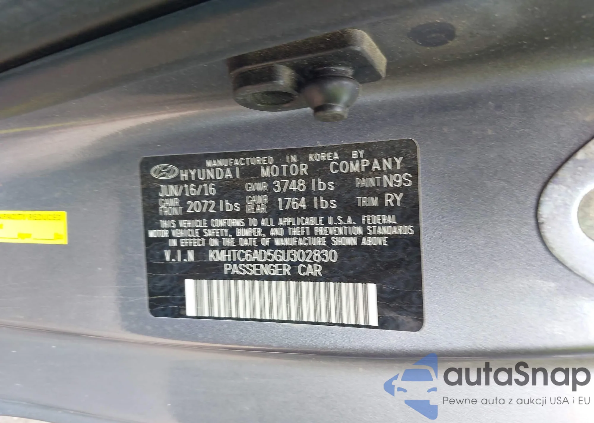• VIN KMHTC6AD5GU302830