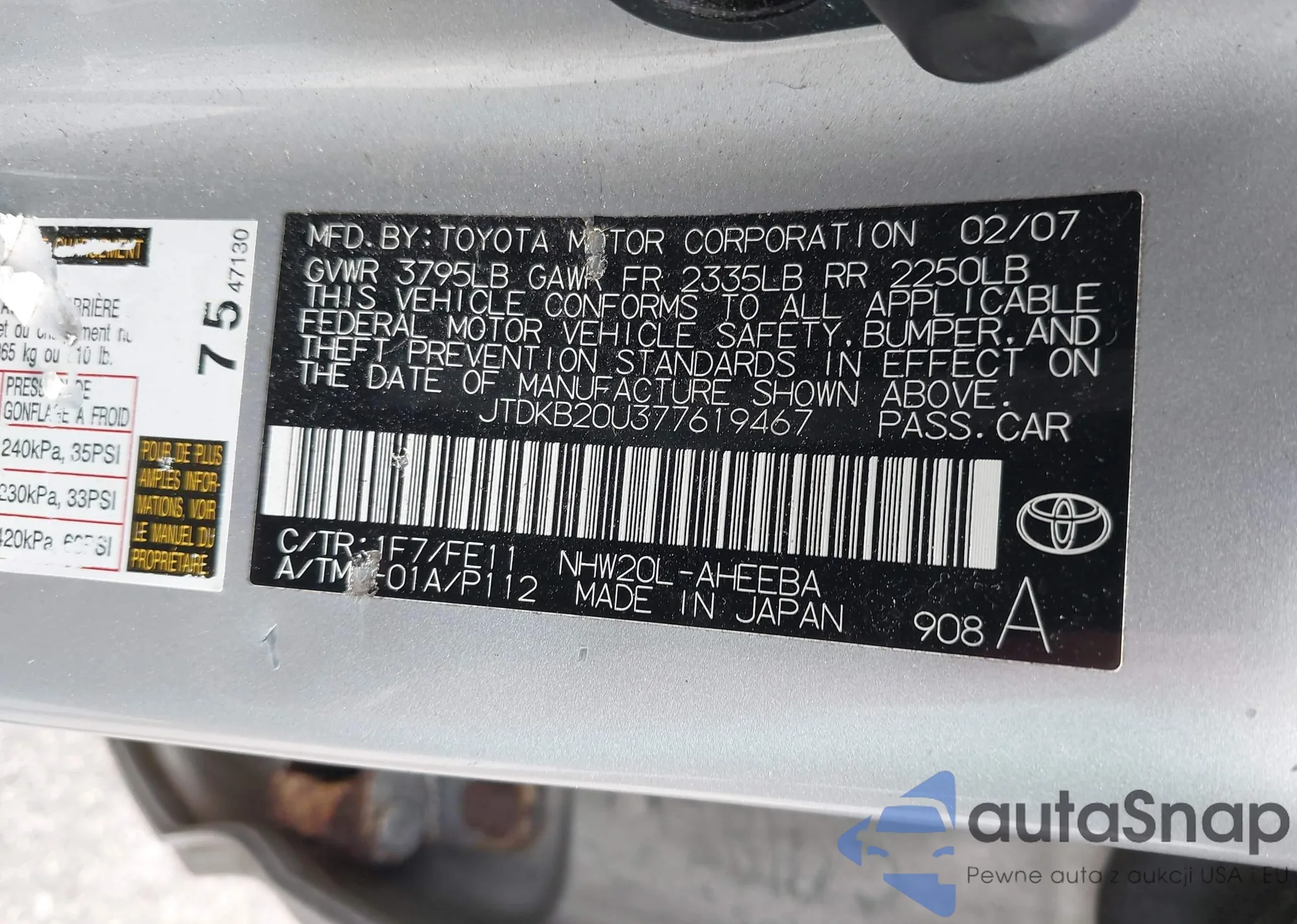 LOT: 42306667 VIN: JTDKB20U377619467