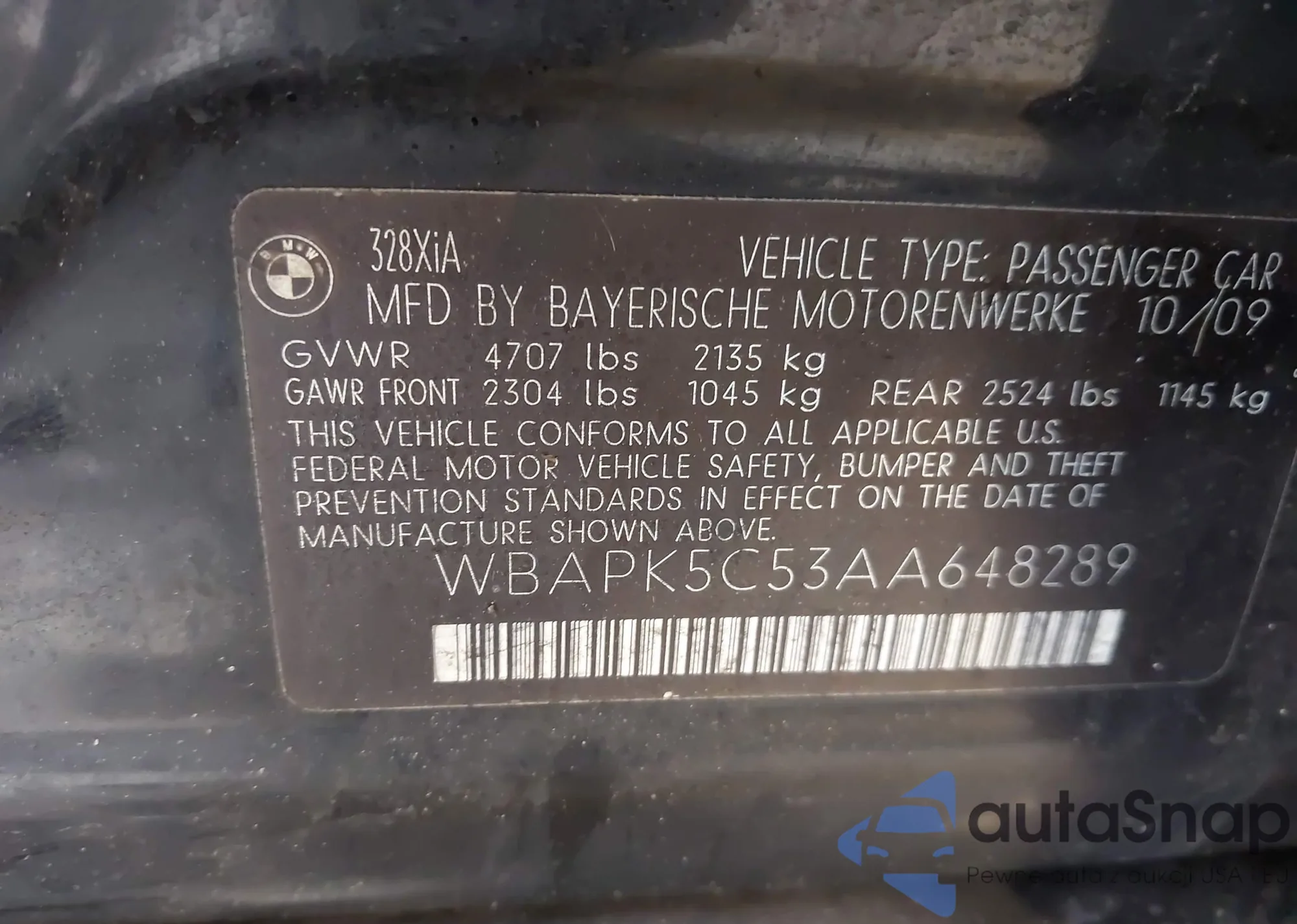 LOT: 42311795 VIN: WBAPK5C53AA648289
