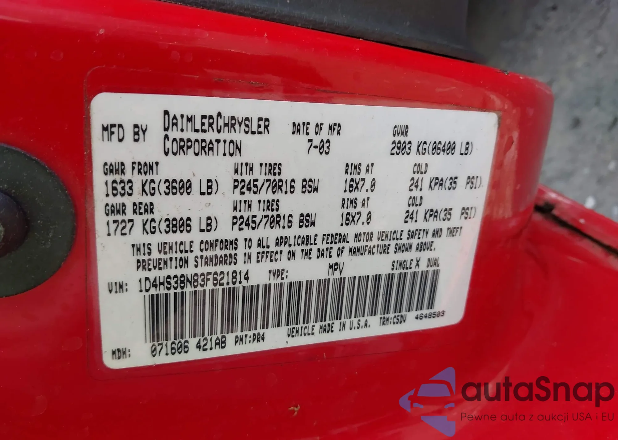 • VIN 1D4HS38N83F621814