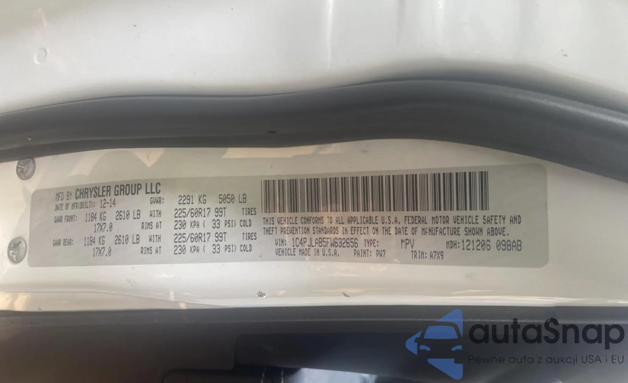 LOT: 59631525 VIN: 1C4PJLAB5FW632656