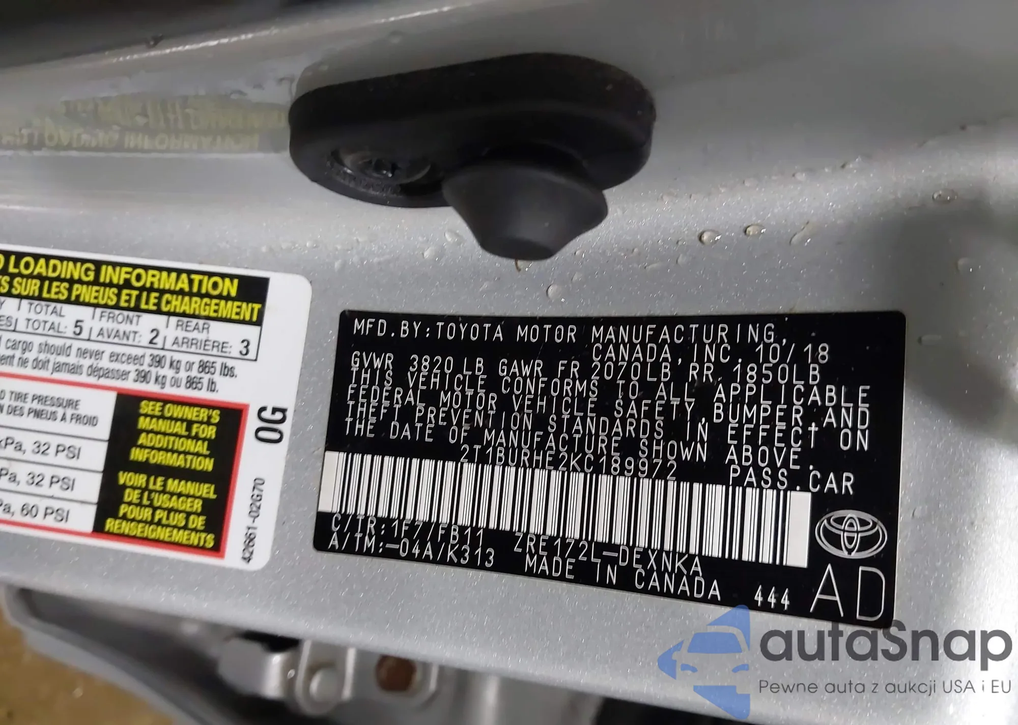 • VIN 2T1BURHE2KC189972