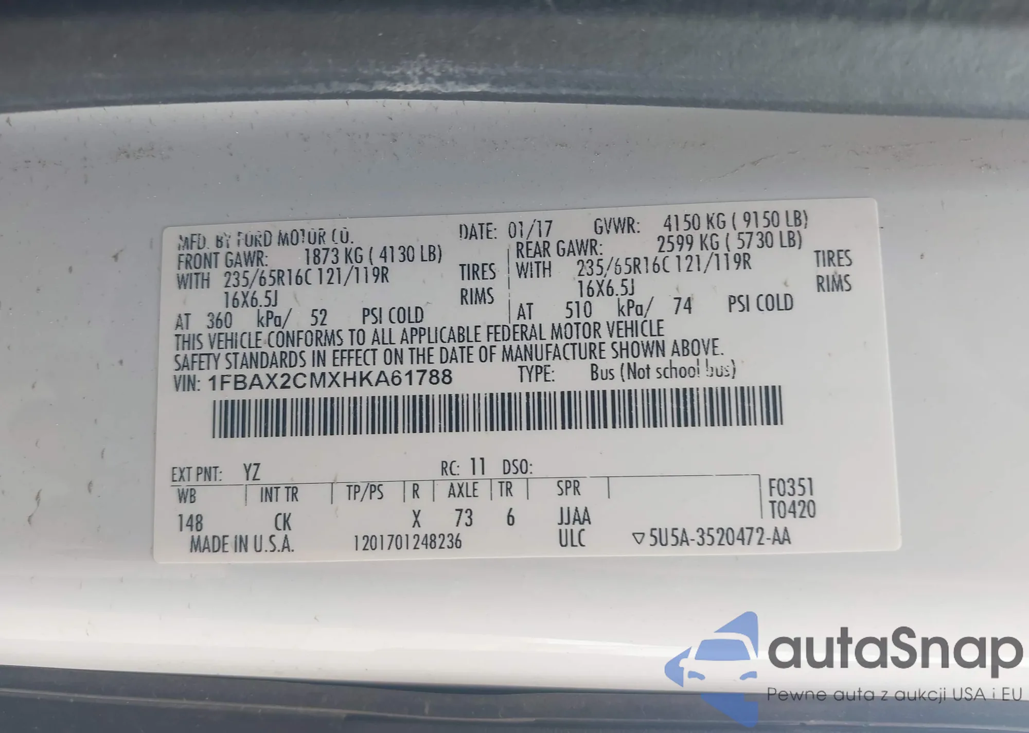 • VIN 1FBAX2CMXHKA61788