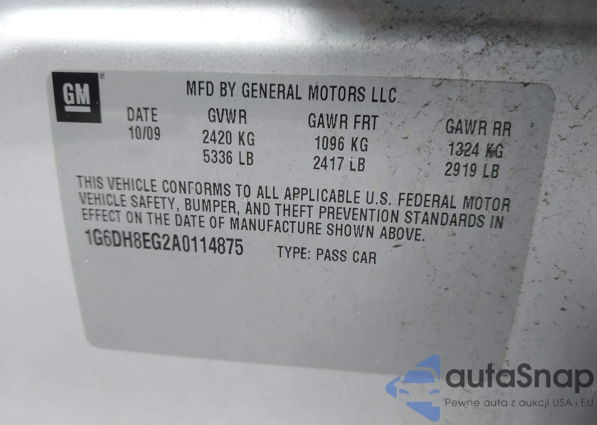 • VIN 1G6DH8EG2A0114875
