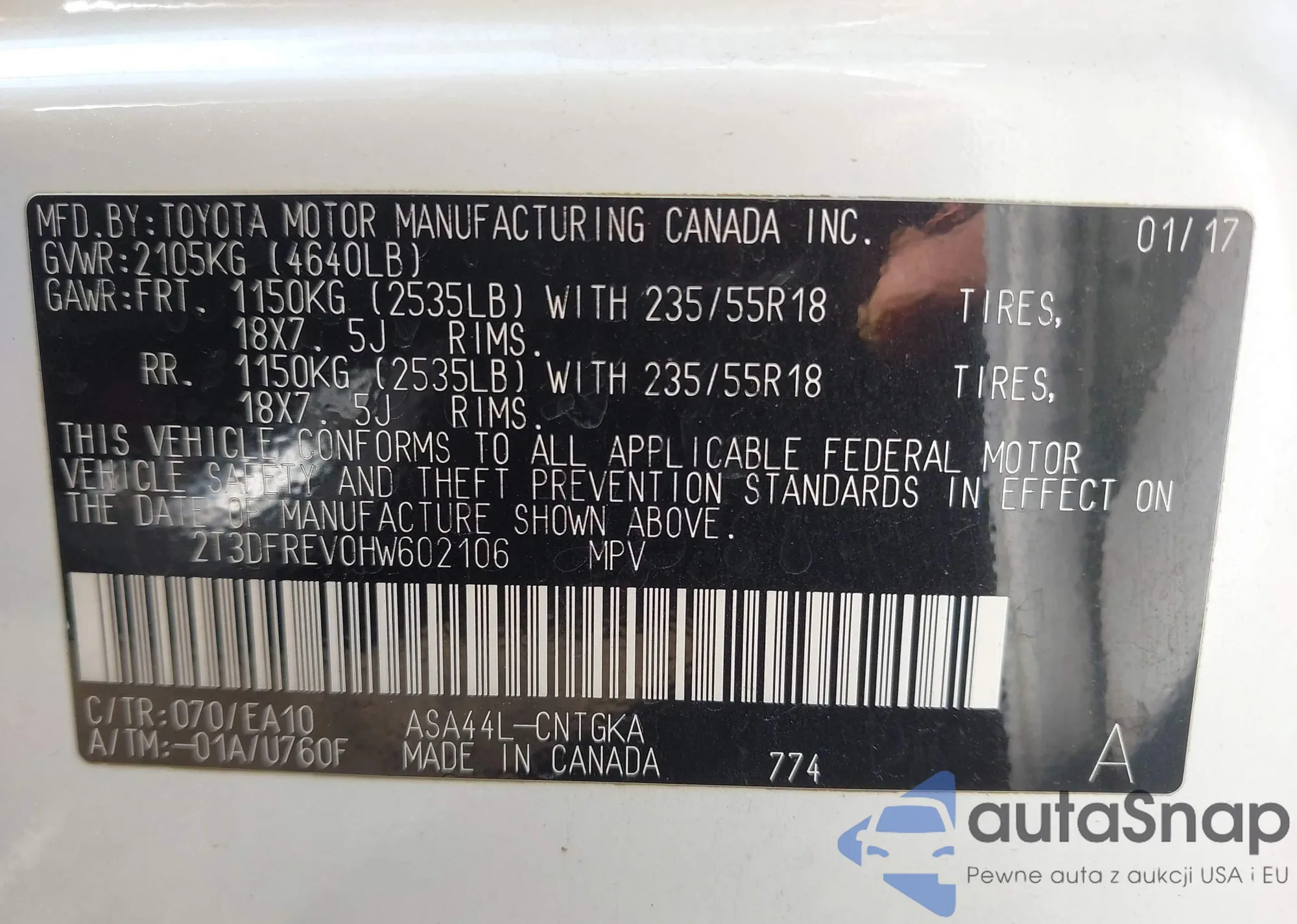 • VIN 2T3DFREV0HW602106