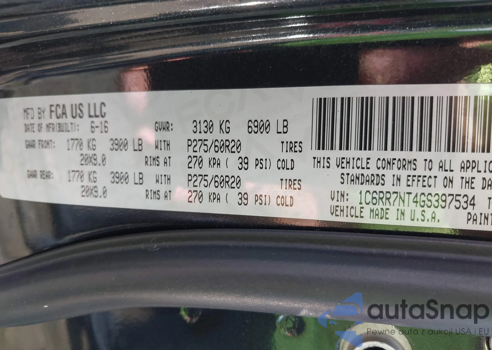 • VIN 1C6RR7NT4GS397534