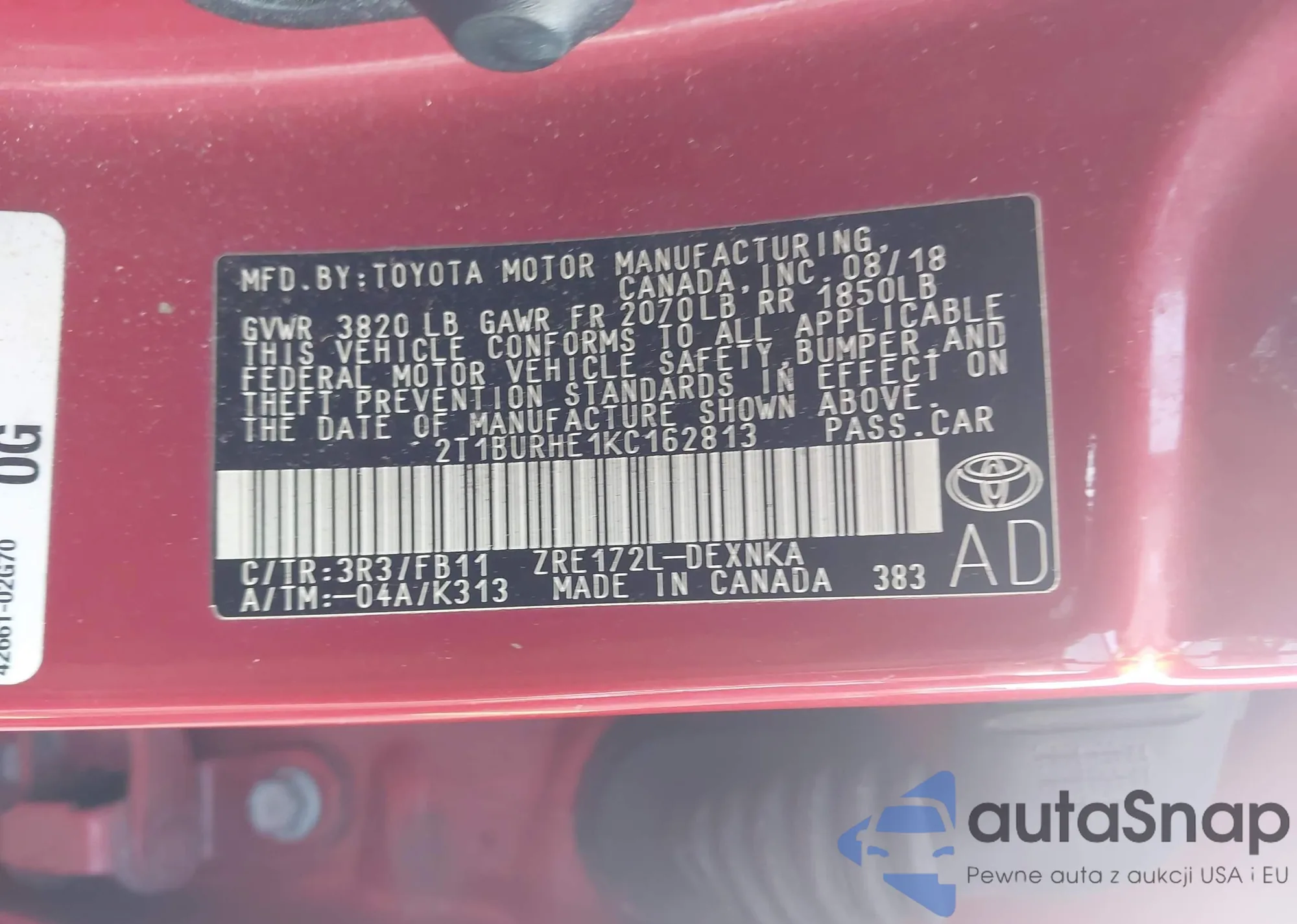 • VIN 2T1BURHE1KC162813