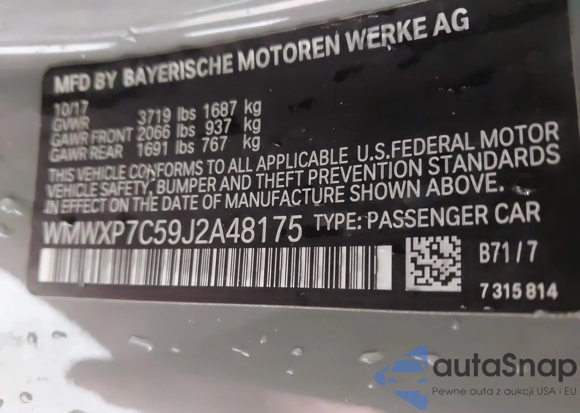 • VIN WMWXP7C59J2A48175