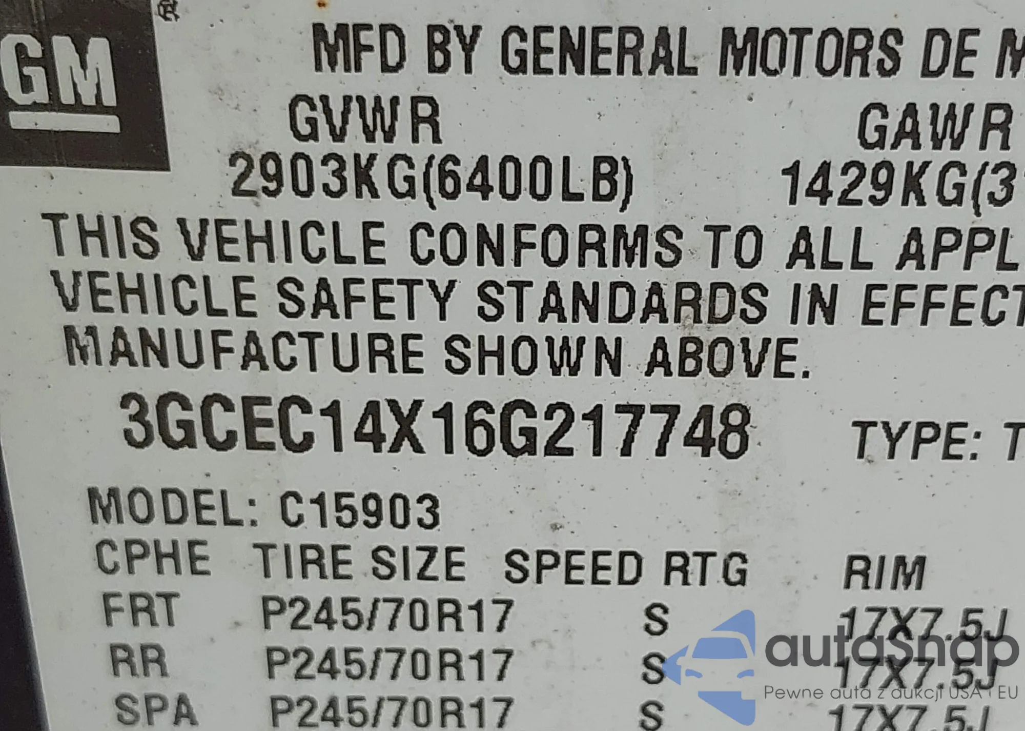 • VIN 3GCEC14X16G217748
