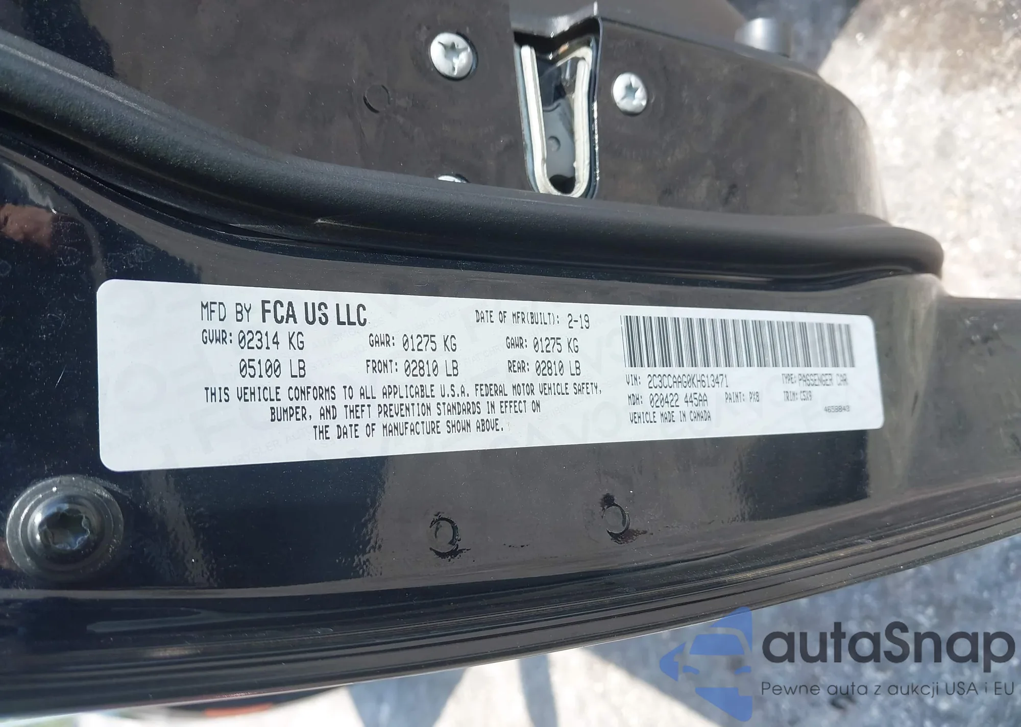 • VIN 2C3CCAAG0KH613471
