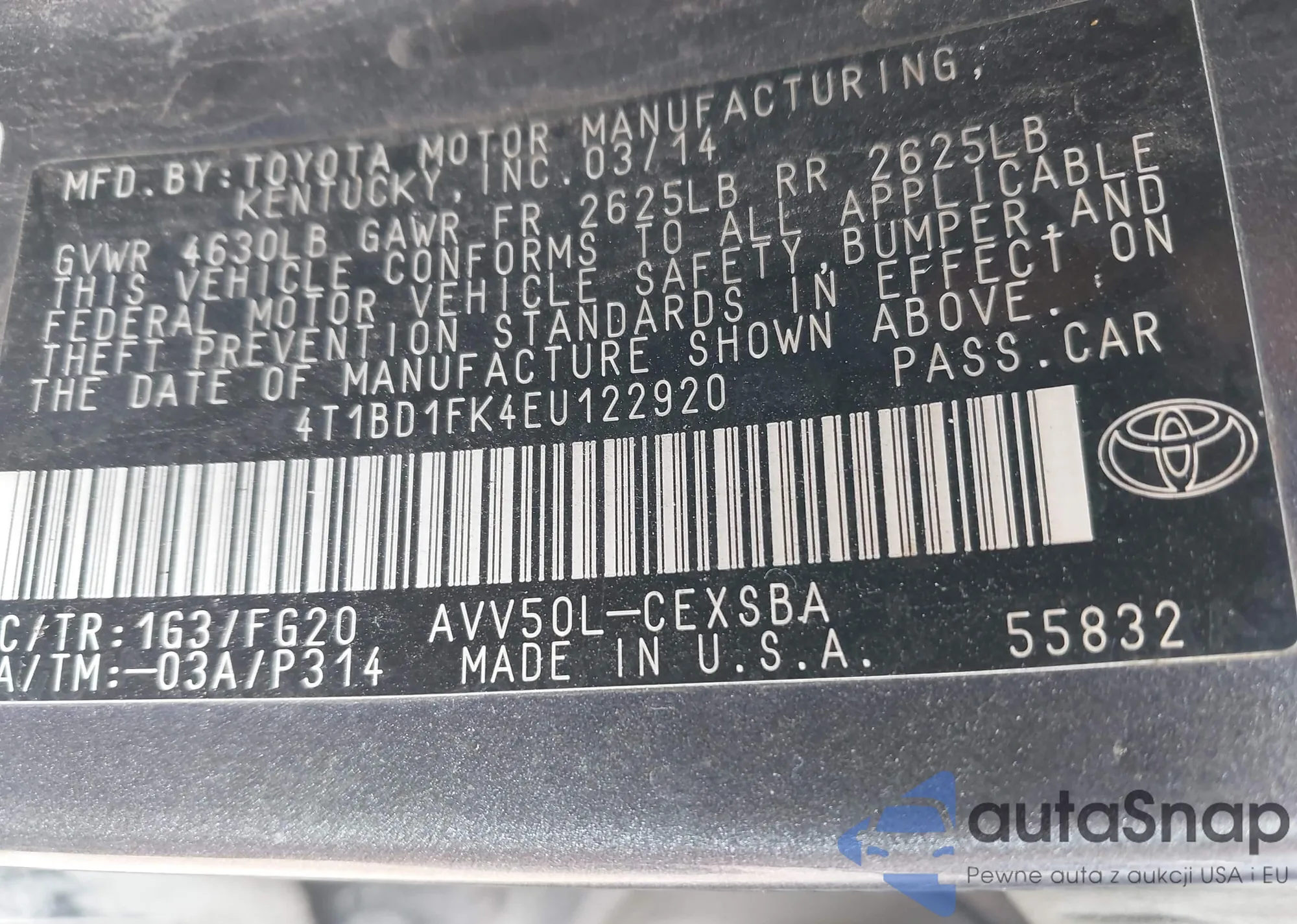 • VIN 4T1BD1FK4EU122920