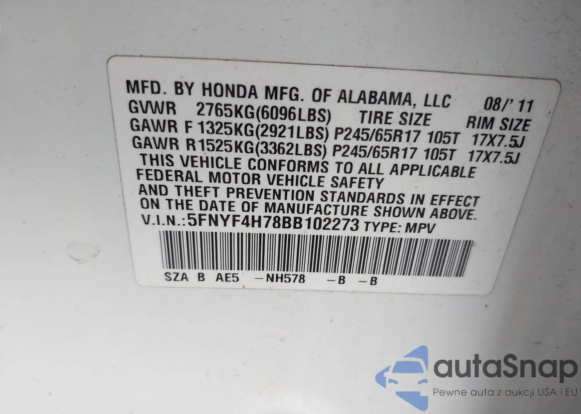 • VIN 2HJYK16566H521231