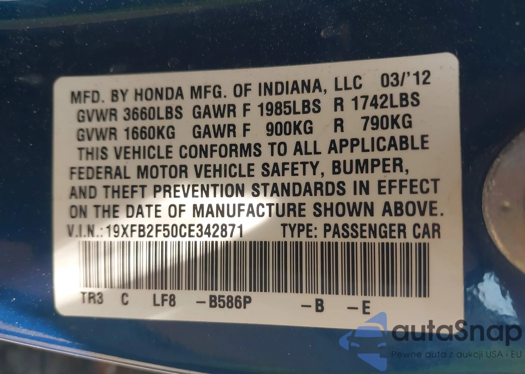 • VIN 19XFB2F50CE342871