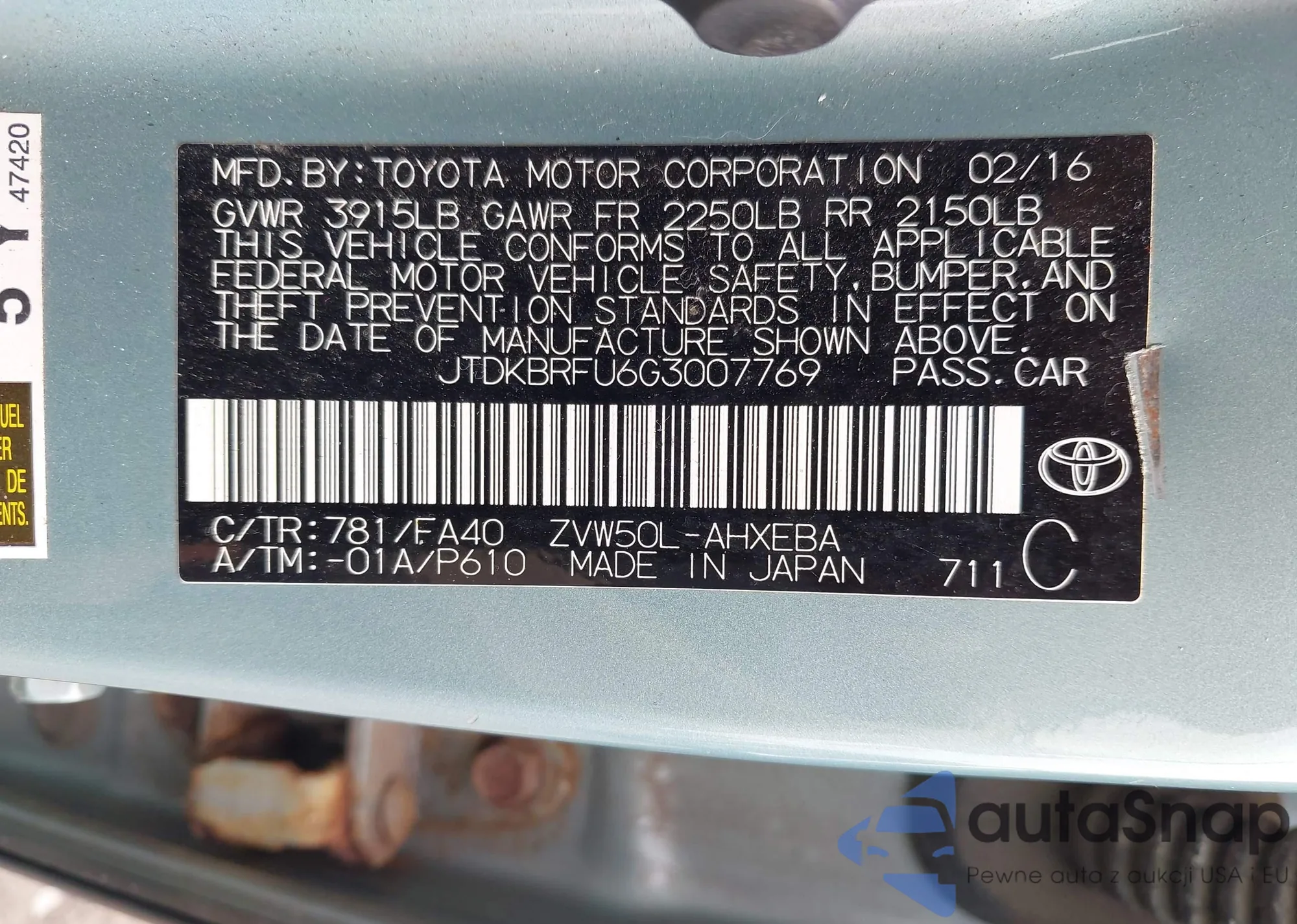 • VIN JTDKBRFU6G3007769