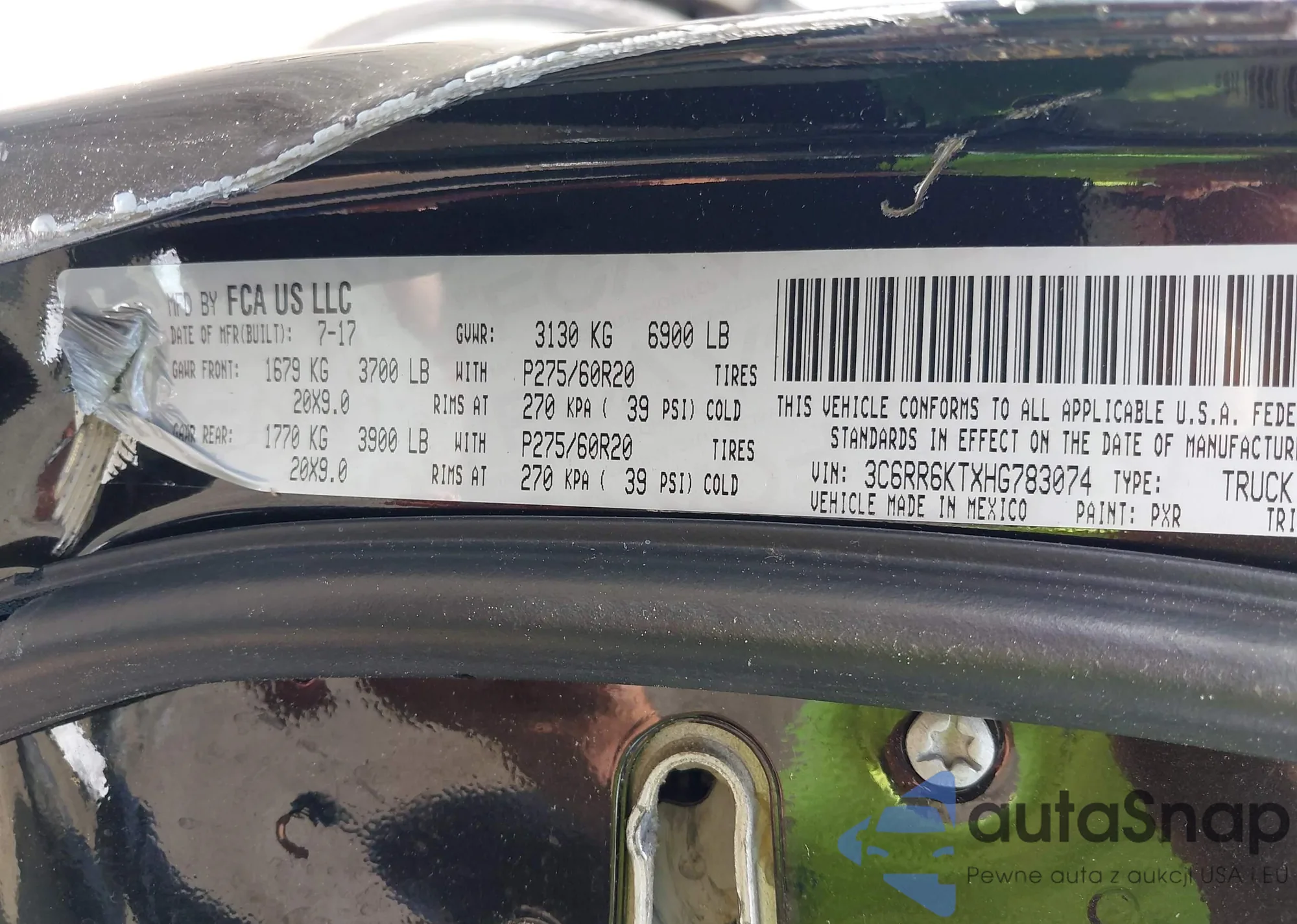 • VIN WBA6H7C57HGA05203