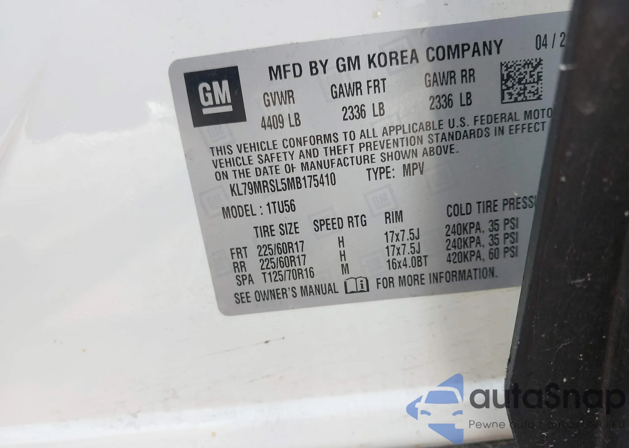 • VIN KL79MRSL5MB175410