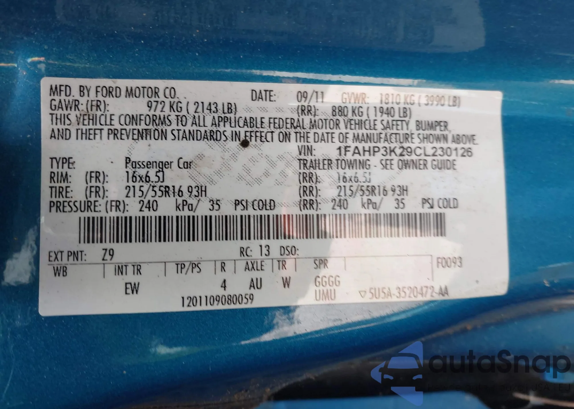 • VIN 1FAHP3K29CL230126