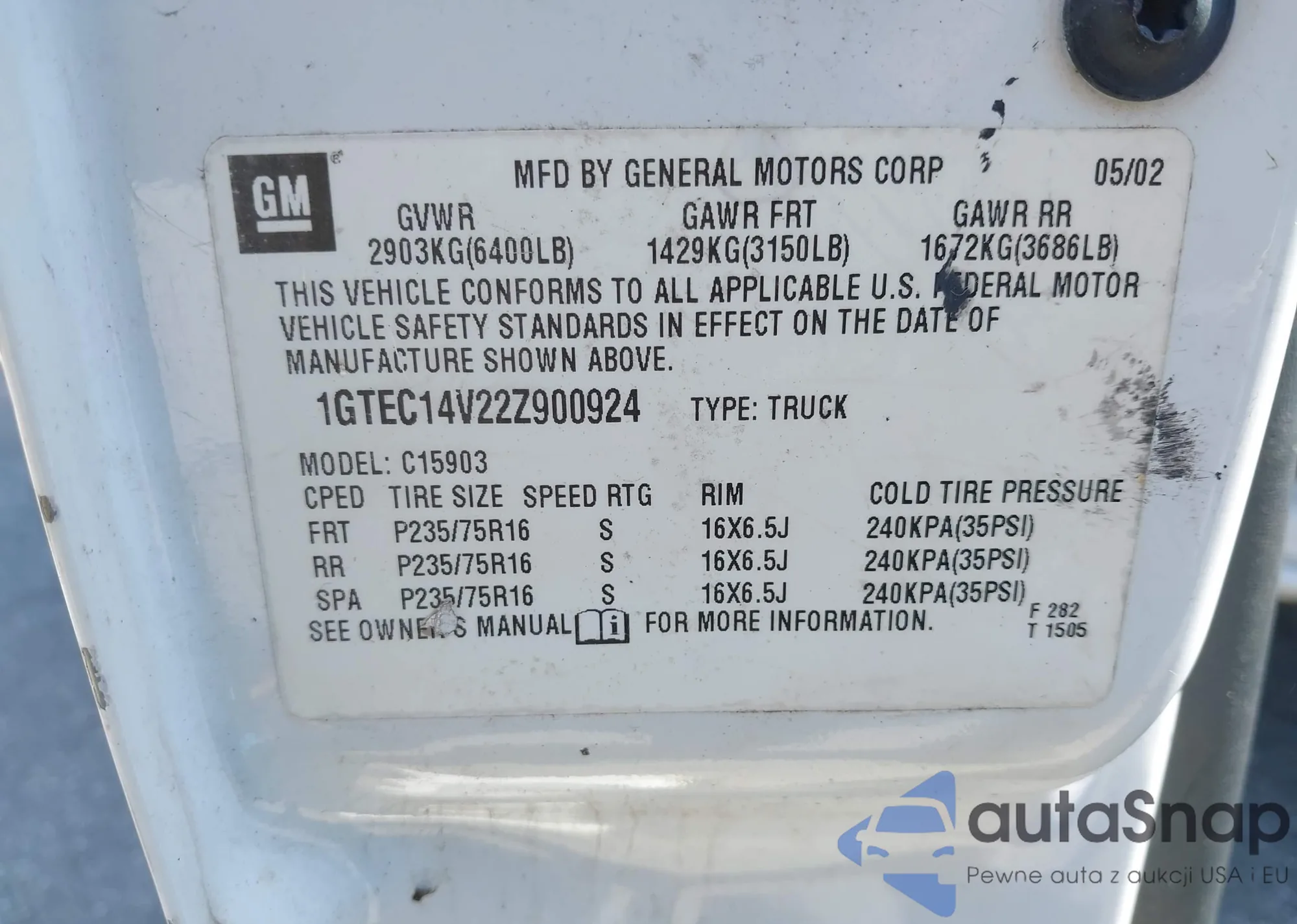 • VIN 1GTEC14V22Z900924