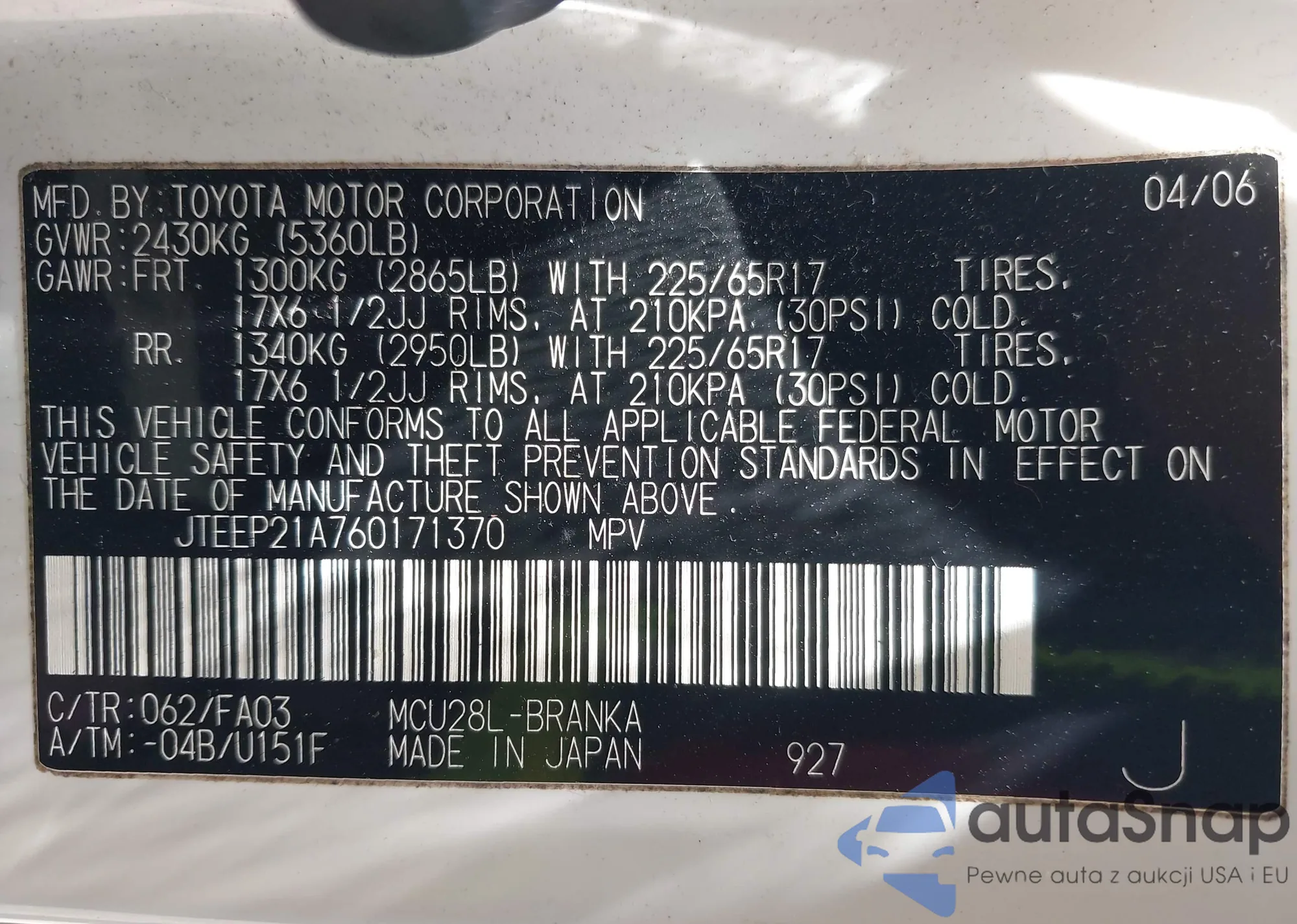 • VIN JTEEP21A760171370