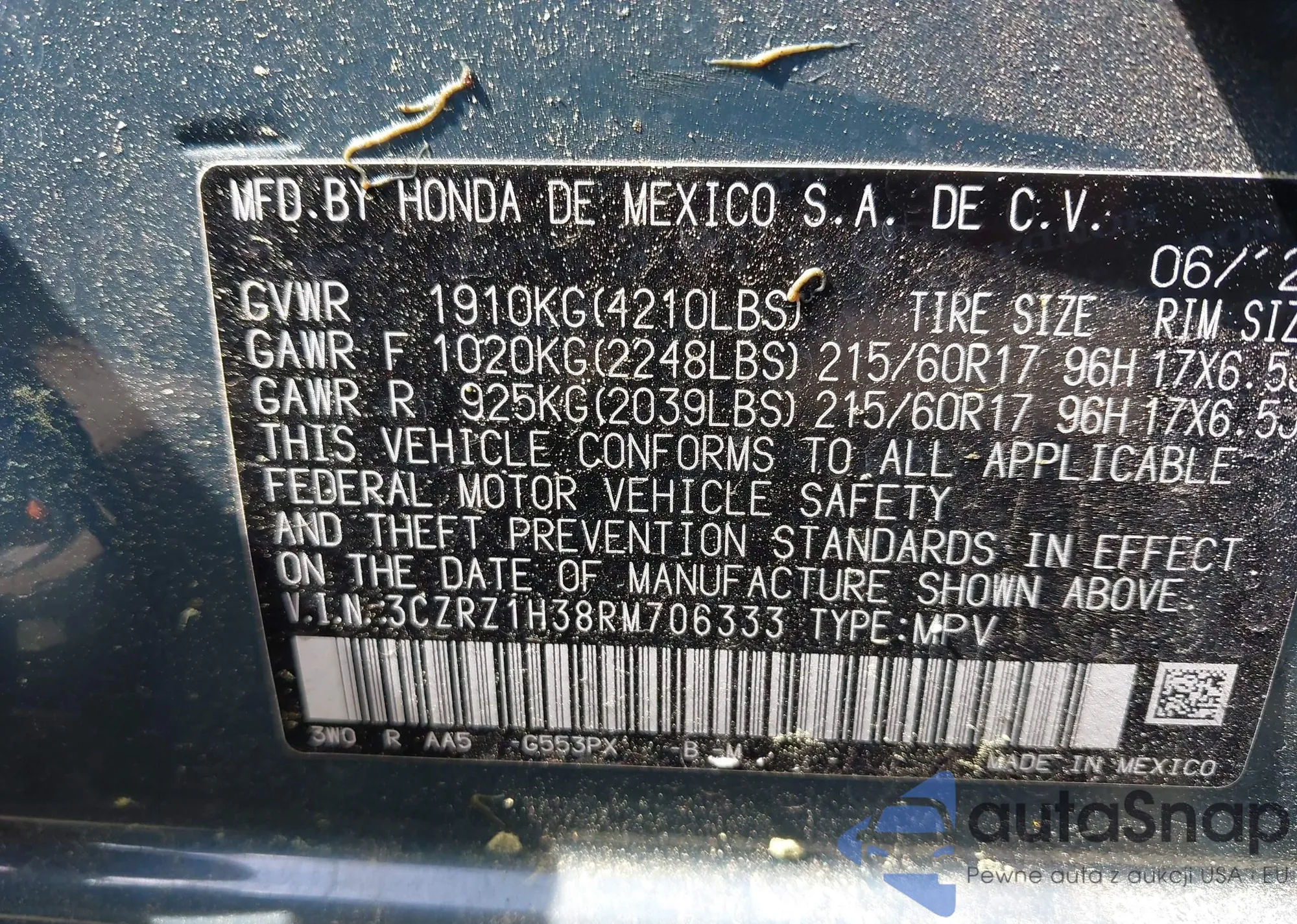• VIN 3CZRZ1H38RM706333