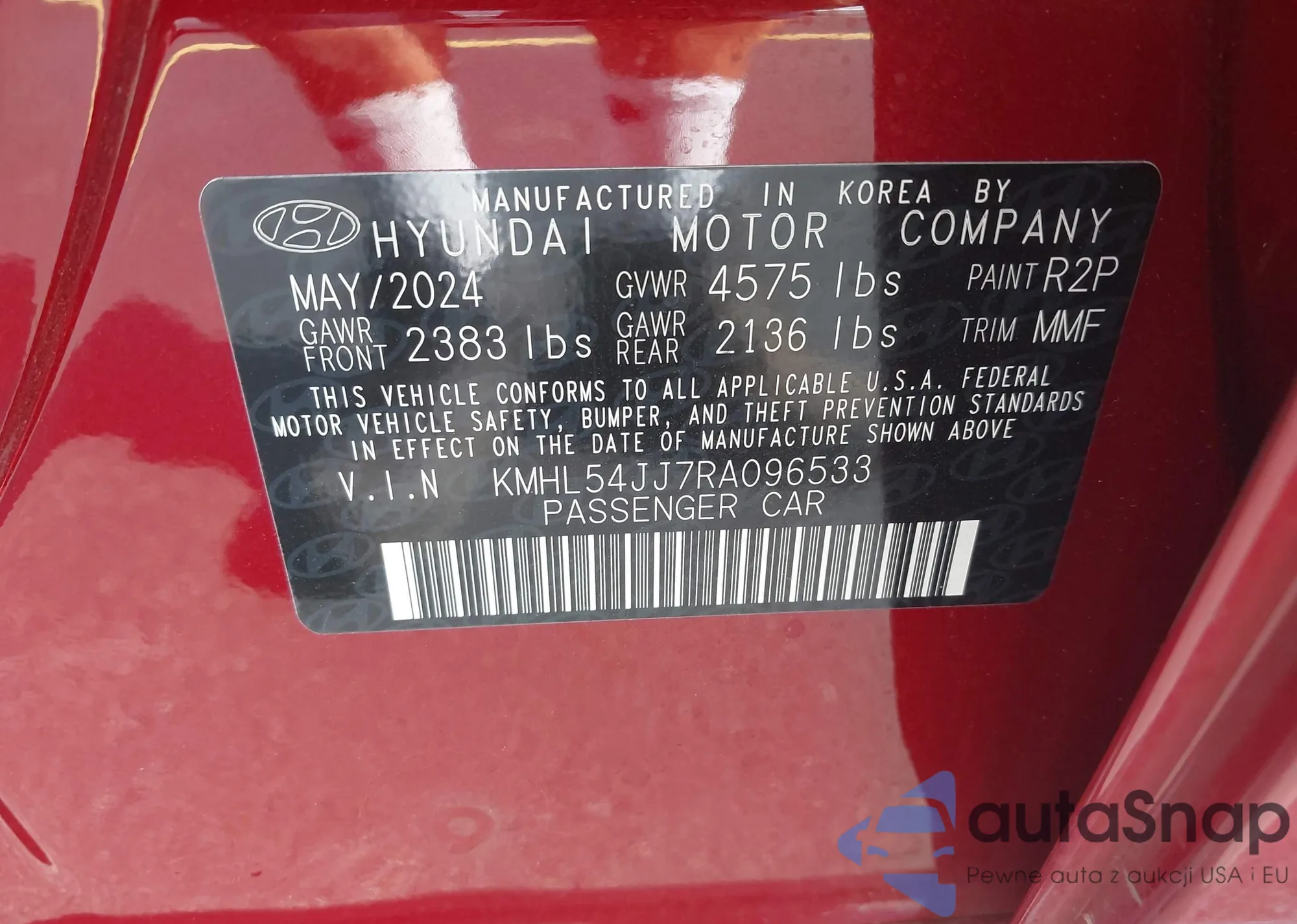 LOT: 42193870 VIN: KMHL54JJ7RA096533