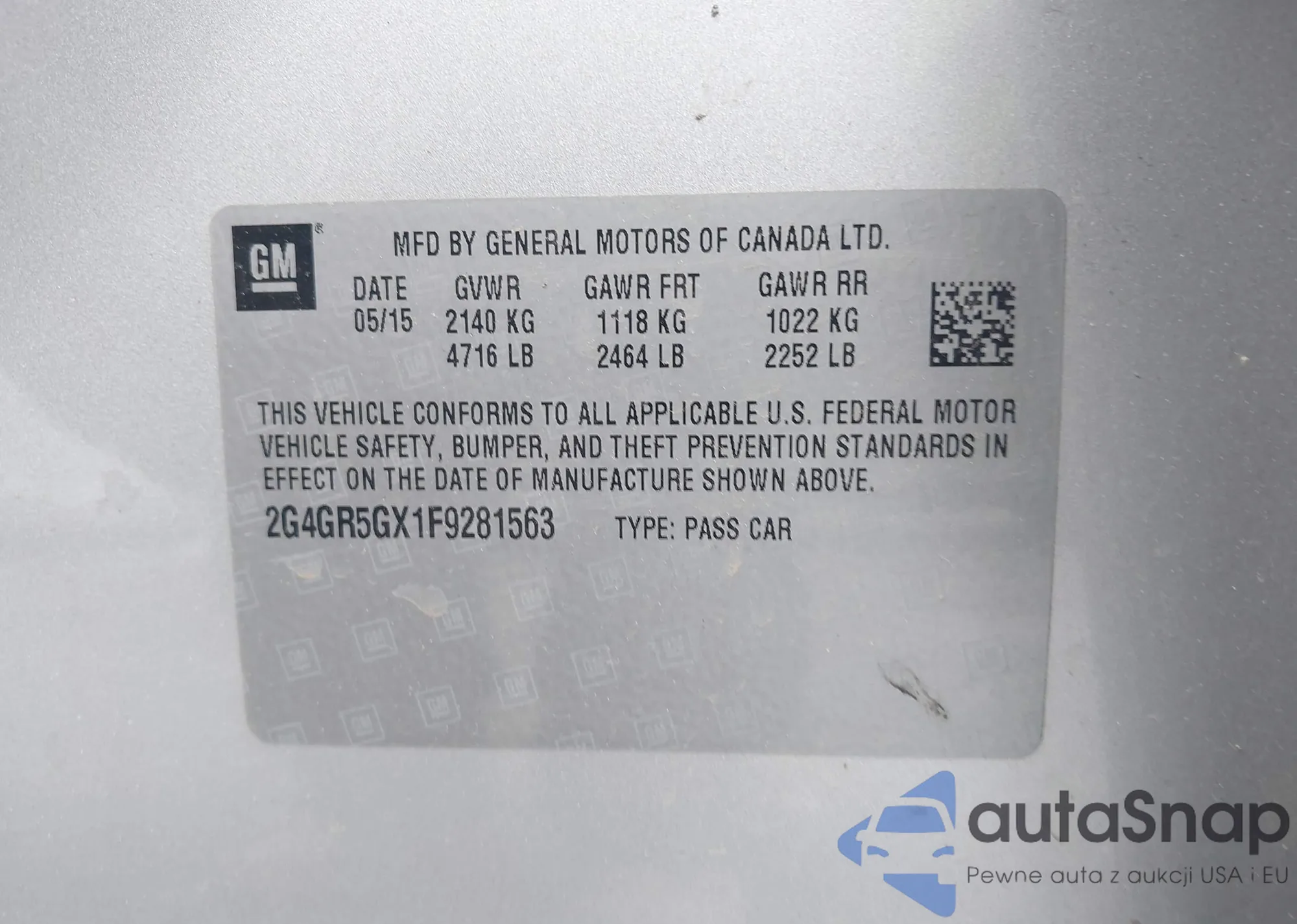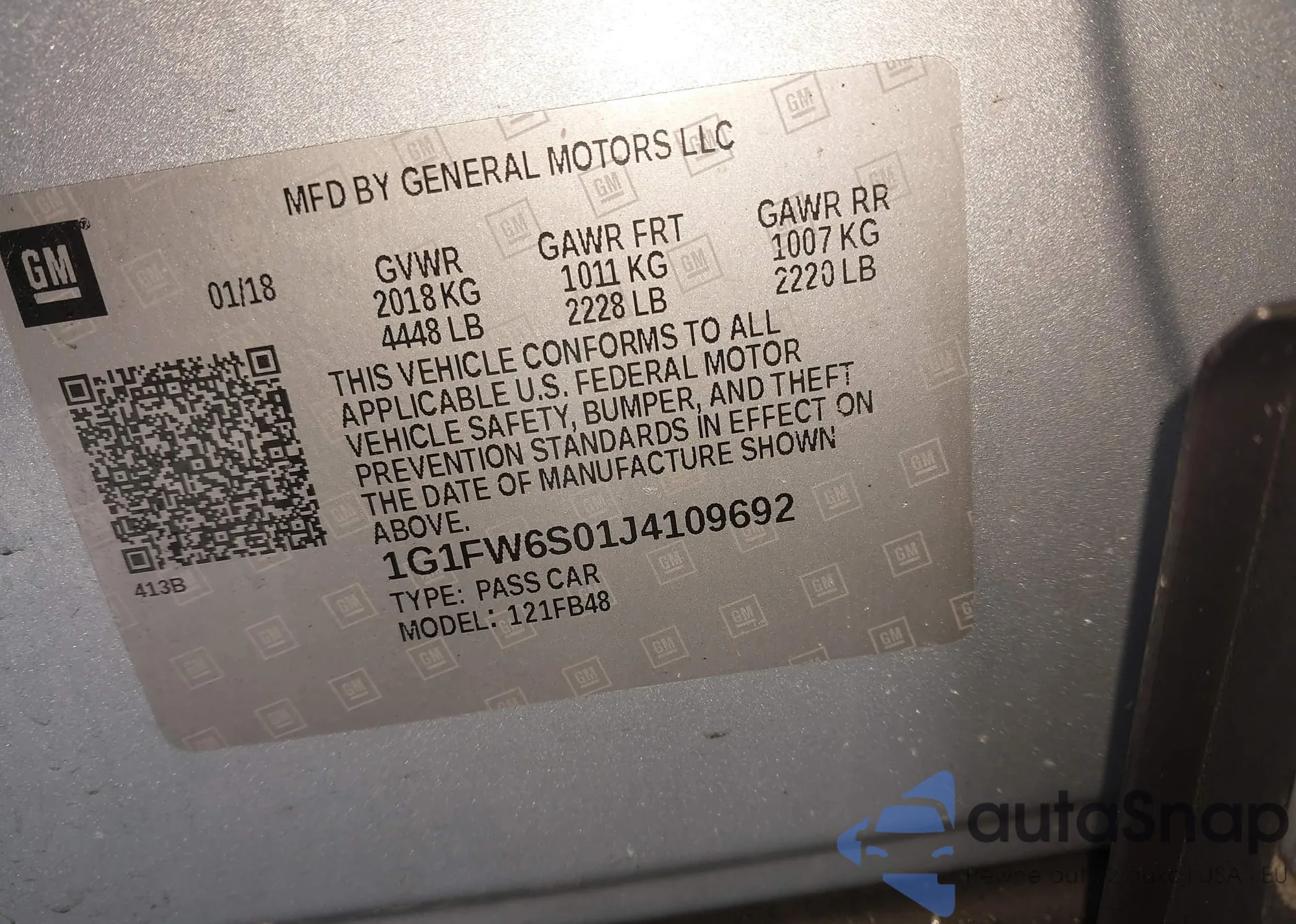 • VIN 1G1FW6S01J4109692