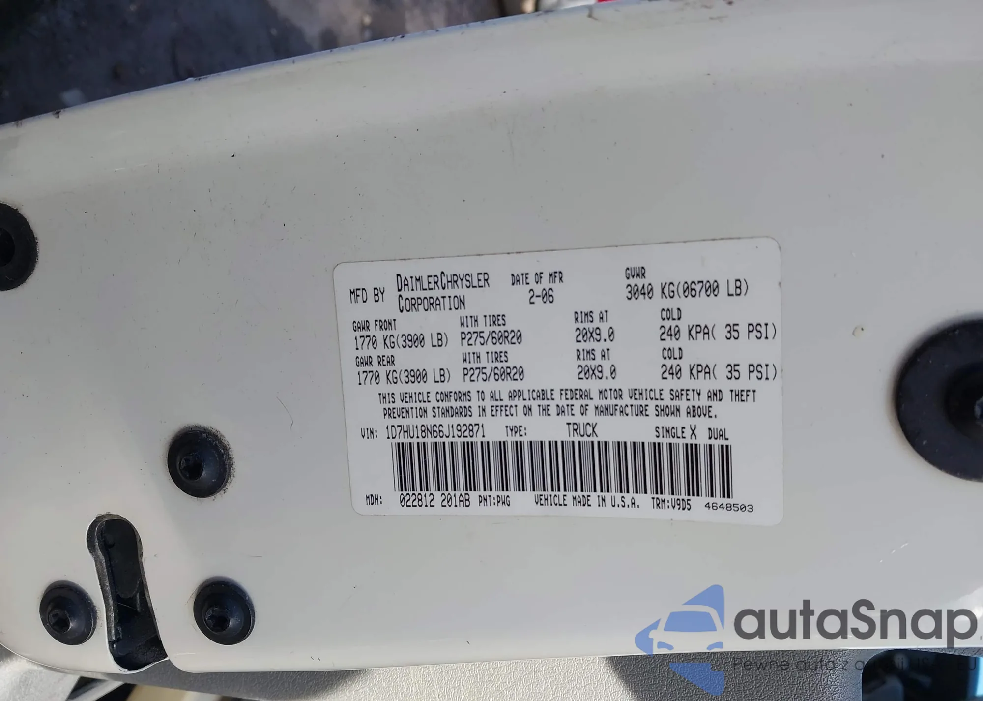 • VIN 1FTRW12W66FA05674