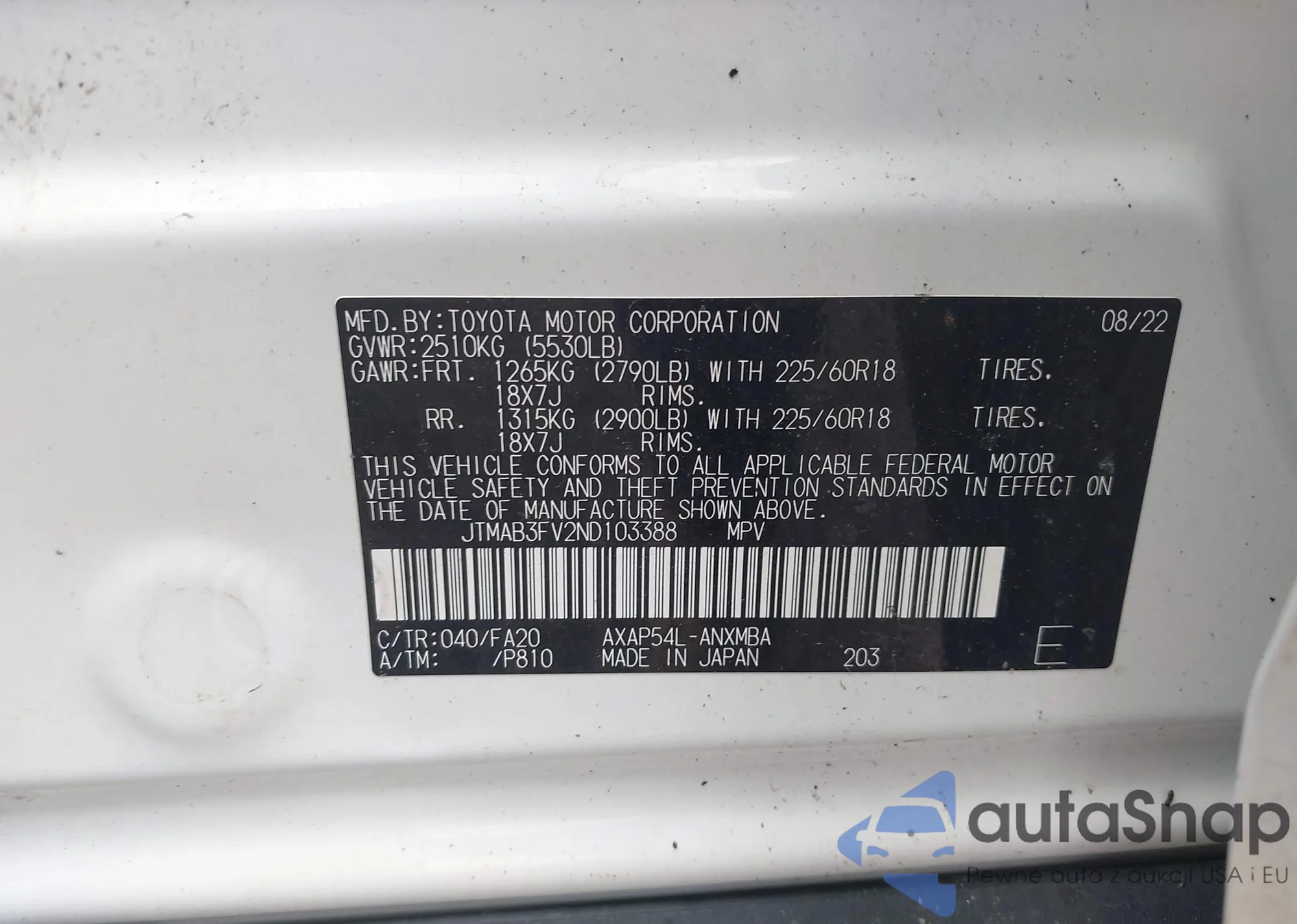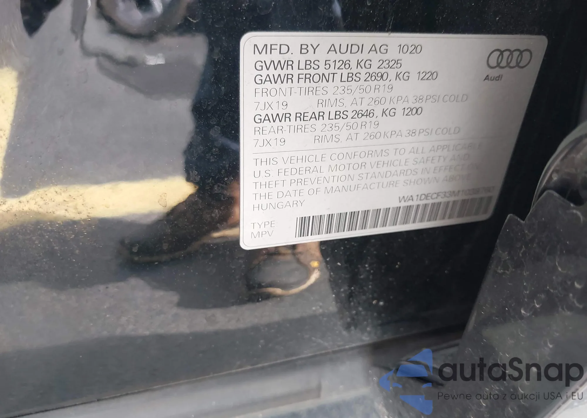 LOT: 42347743 VIN: WA1DECF33M1038760