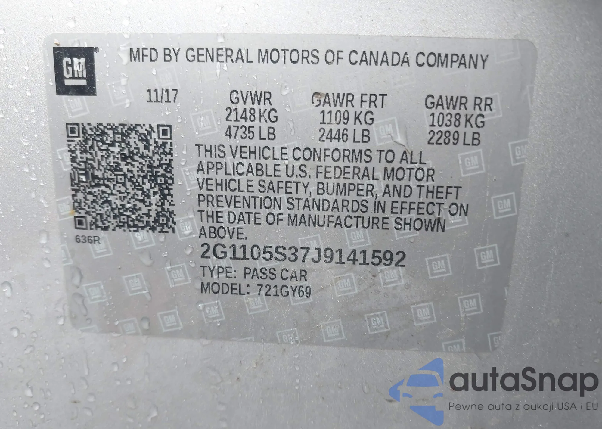 • VIN 2GNAXKEV1K6189548