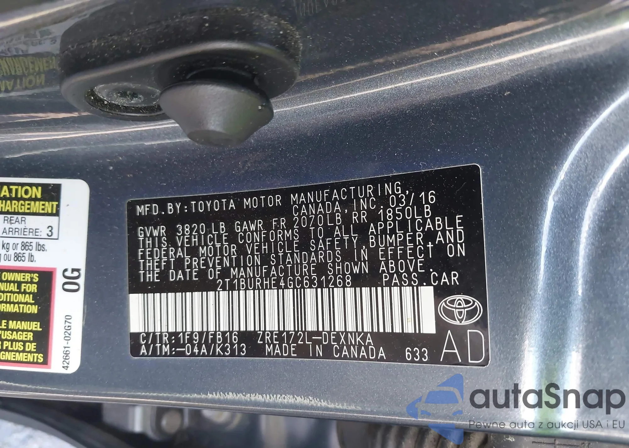 • VIN 2T1BURHE4GC631268