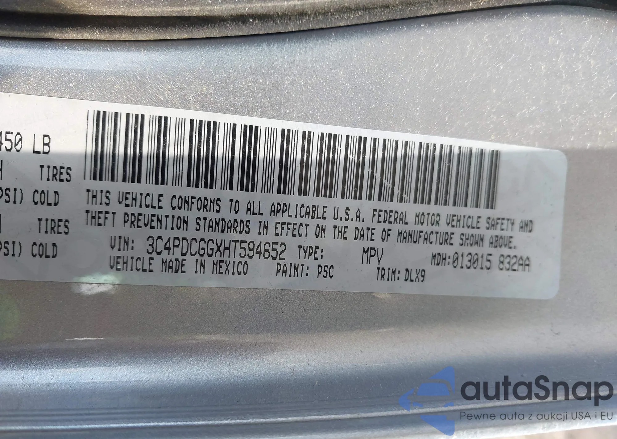 LOT: 42471989 VIN: 3C4PDCGGXHT594652