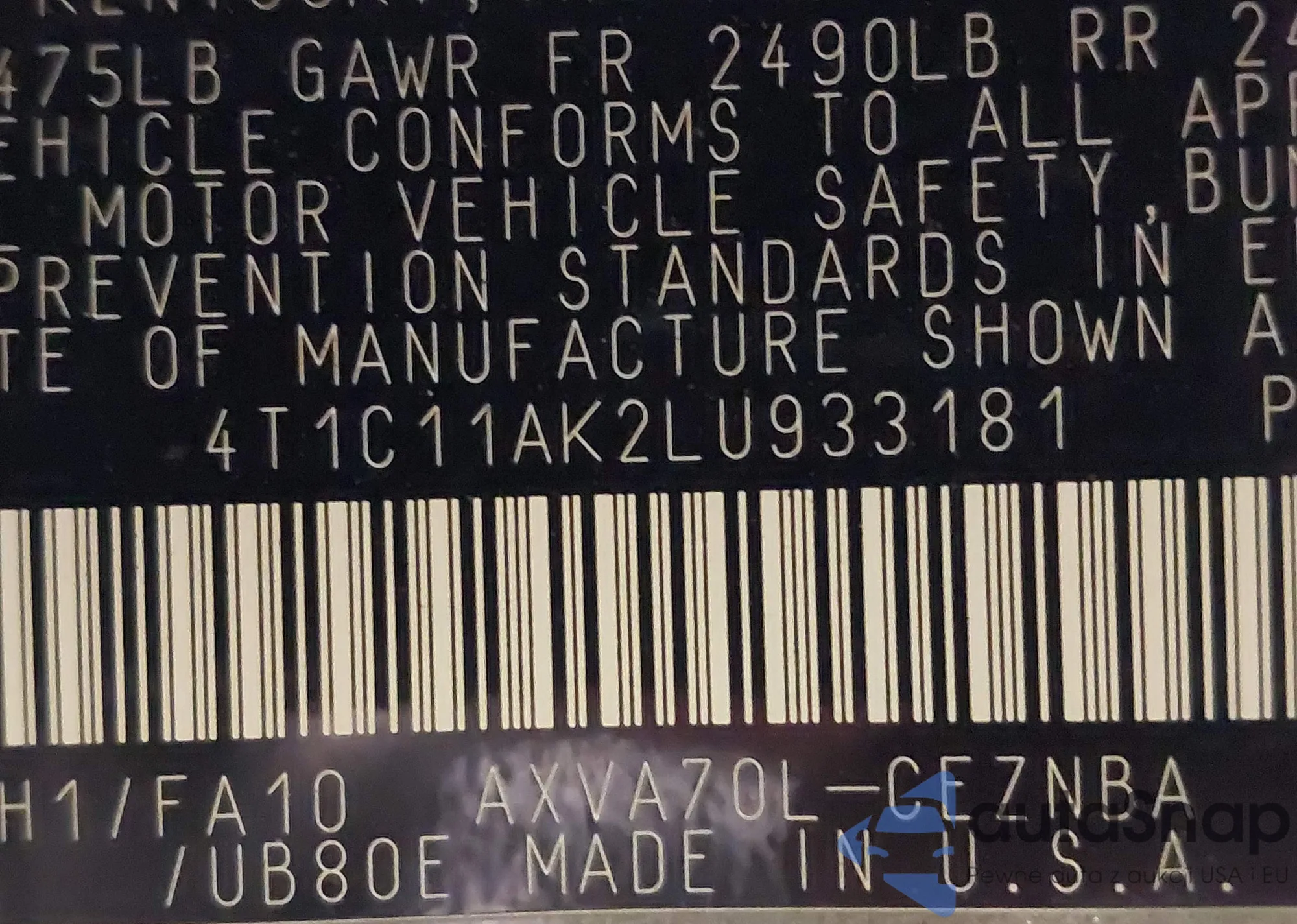 • VIN 4T1C11AK2LU933181