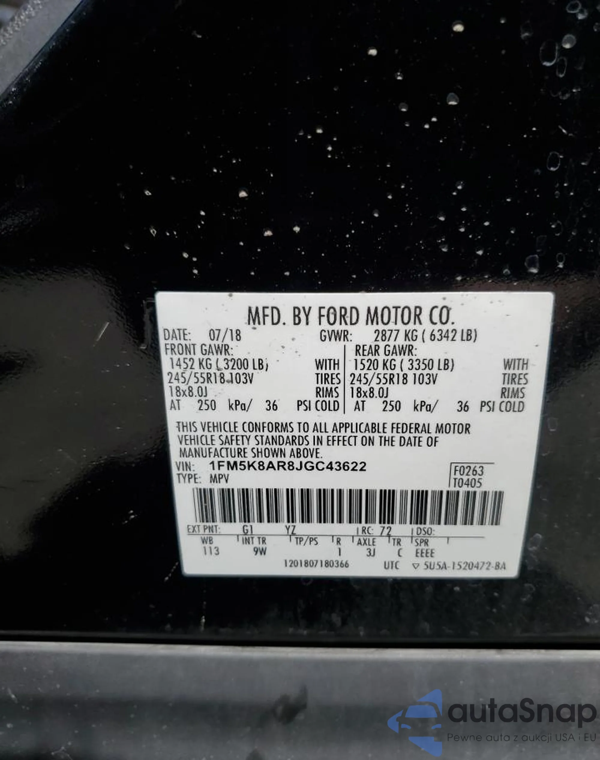 • VIN 1FM5K8AR8JGC43622