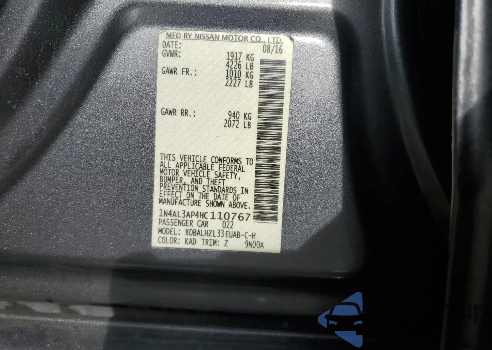• VIN 4T1BD1EB9DU007794