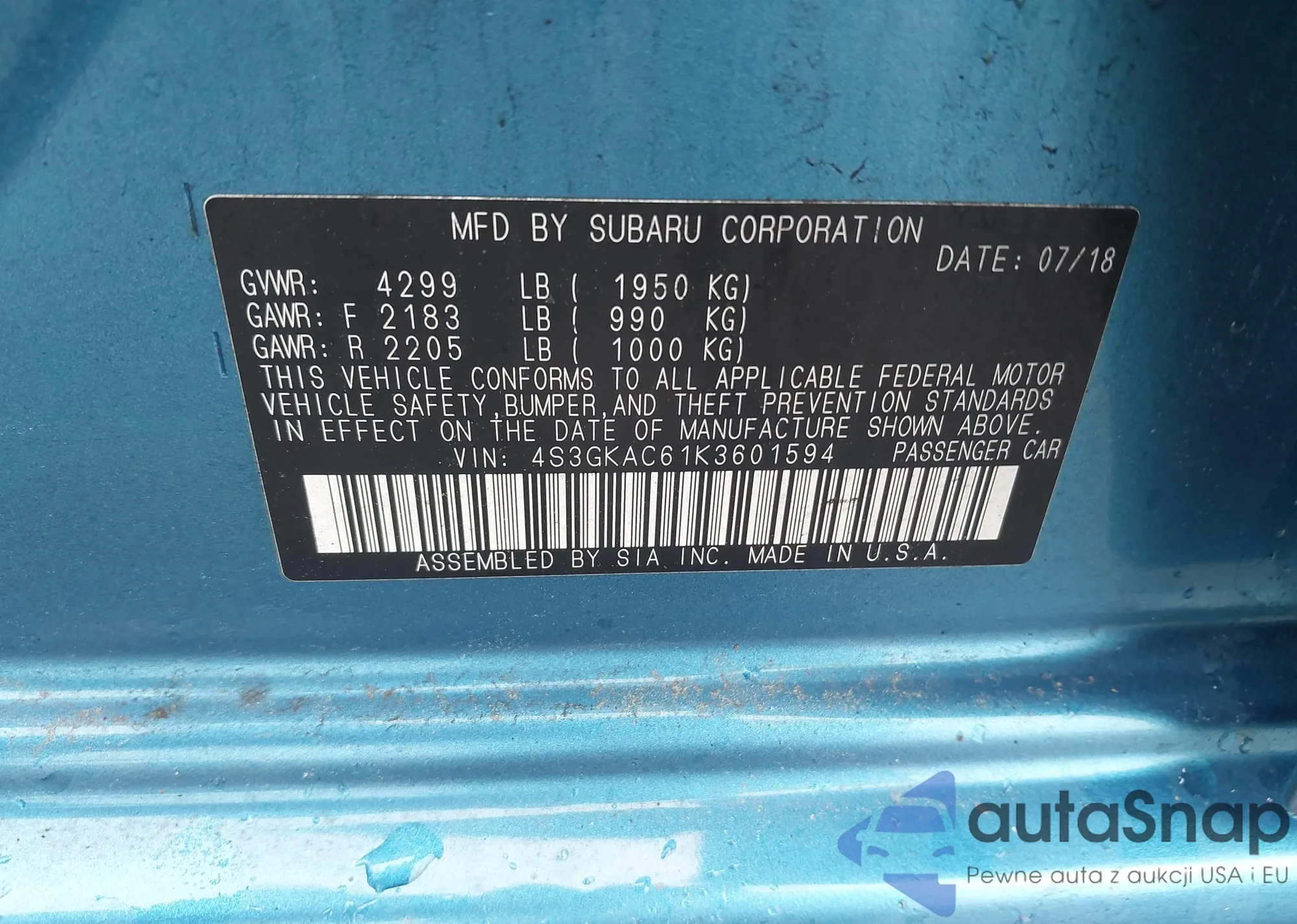 LOT: 42283342 VIN: 3MZBN1L39JM262035