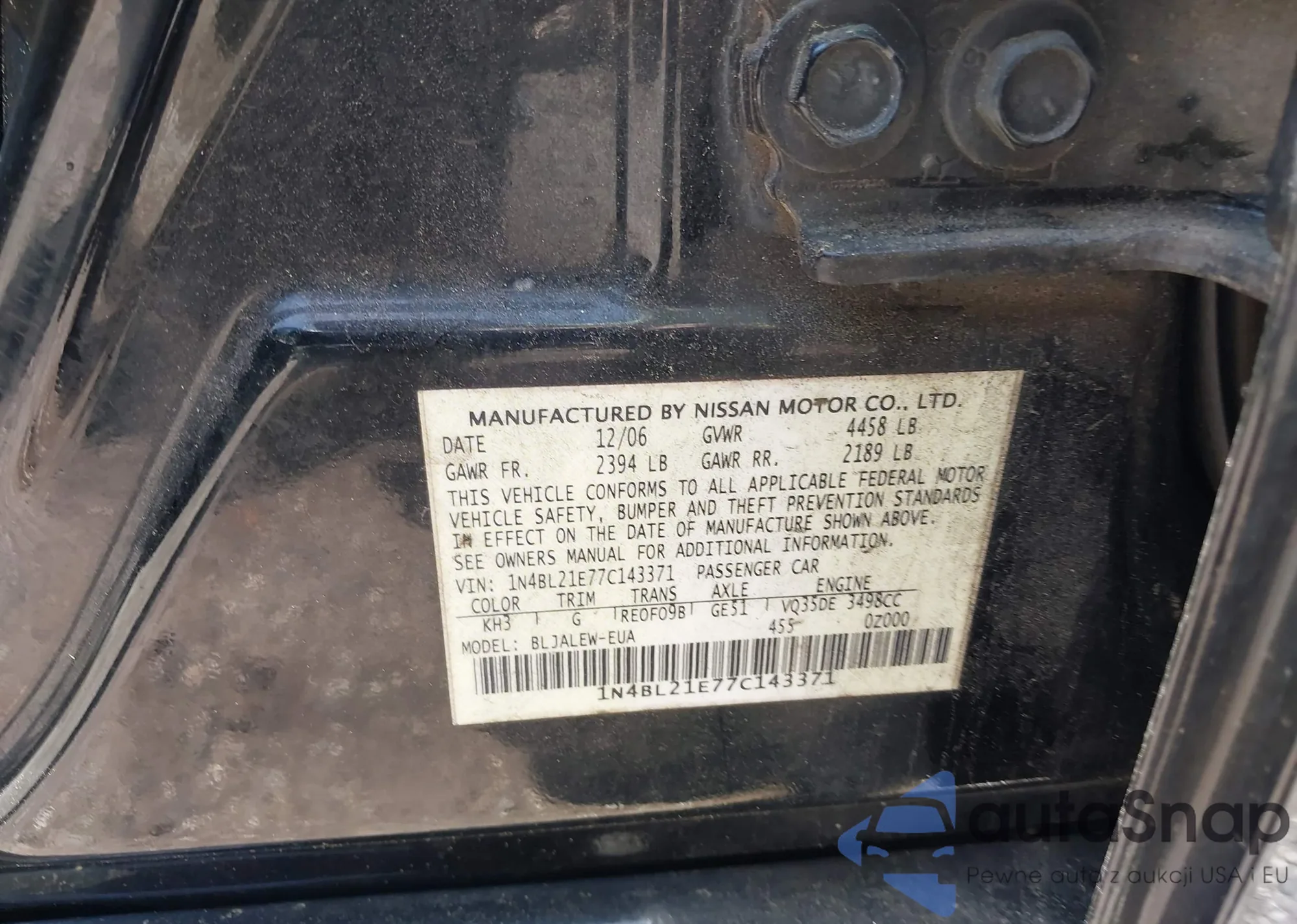 • VIN 1N4BL21E77C143371