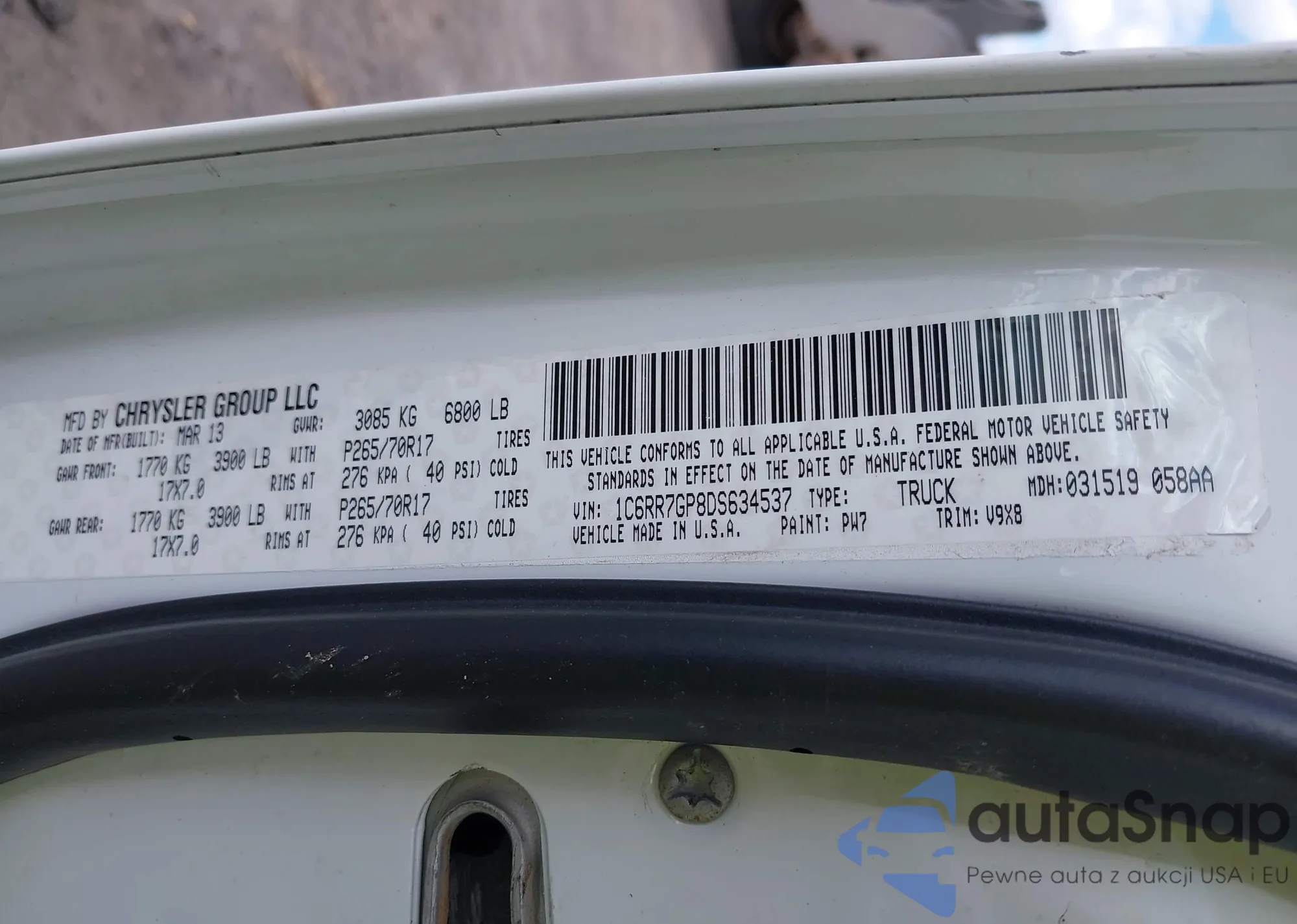 • VIN 1C6RR7GP8DS634537