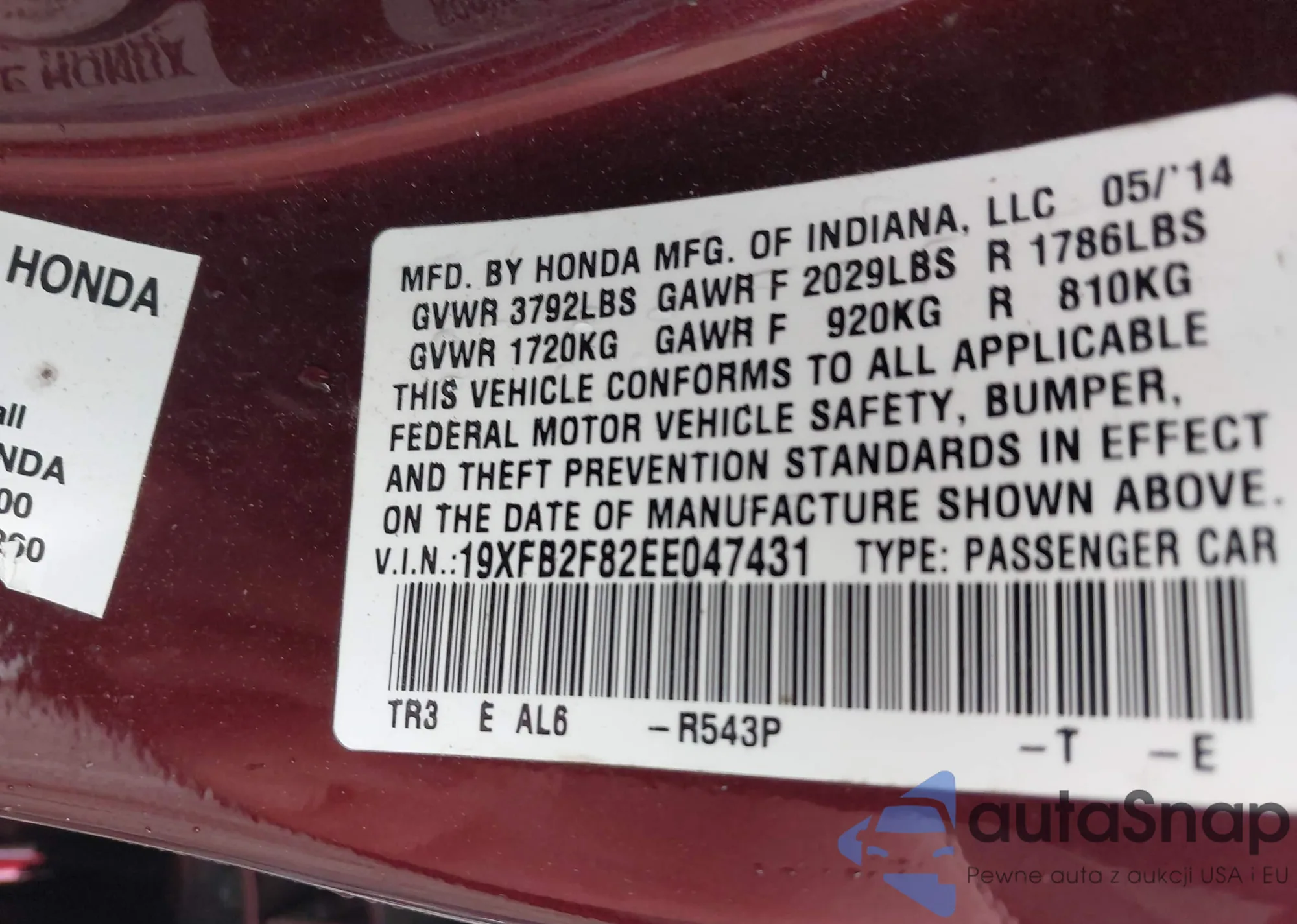 LOT: 42305680 VIN: 19XFB2F82EE047431