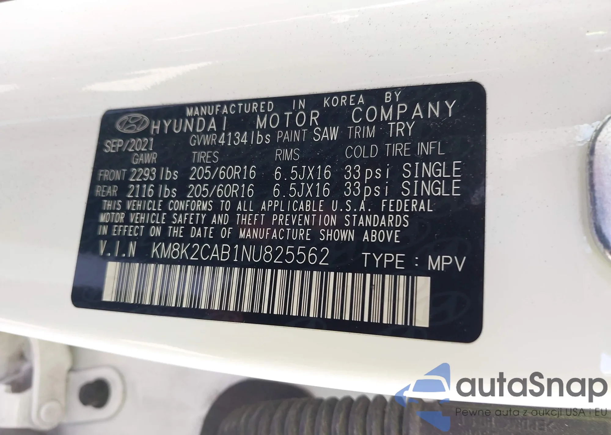 • VIN KM8K2CAB1NU825562